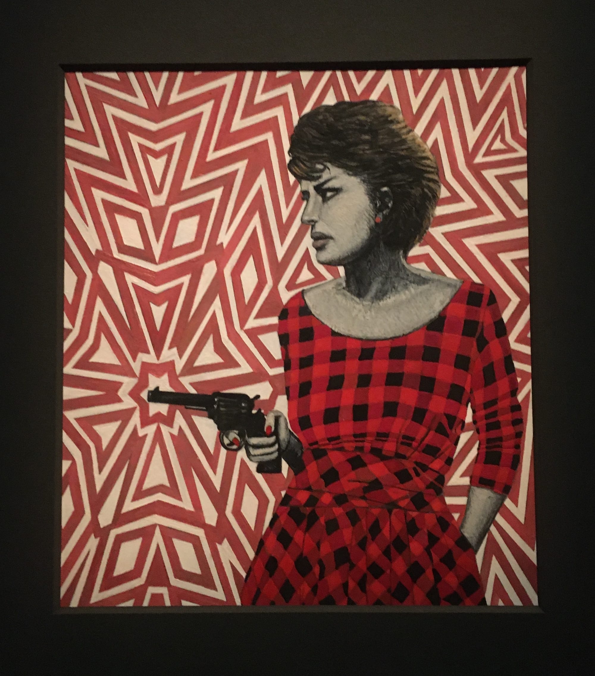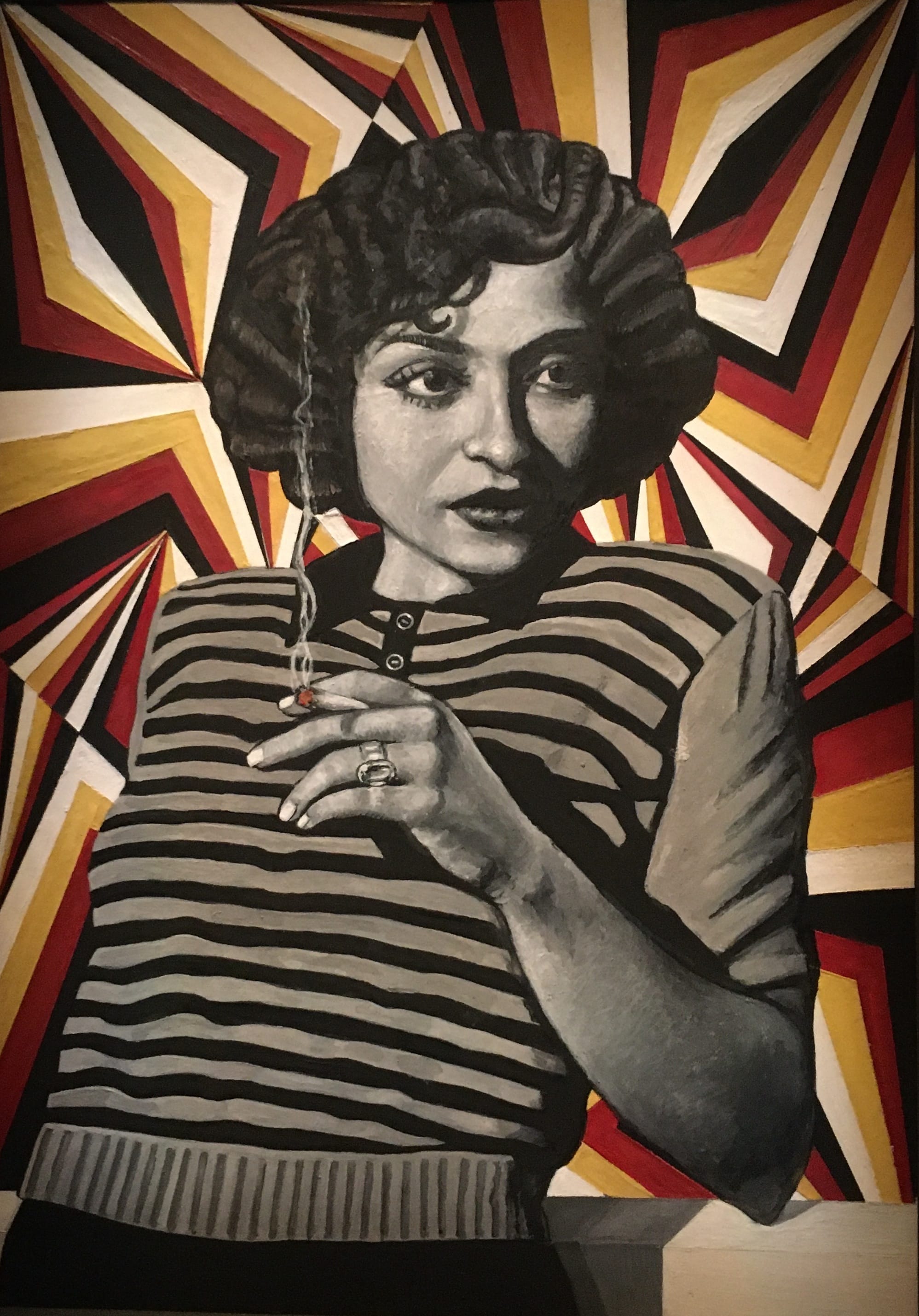 LONDON — A woman leans seductively against a table, pouting. She holds a cigarette loosely in her manicured hand and wears a striped polo shirt. Her curly dark hair is cut in a stylish Marilyn Monroe bob. This is Zinat Moadab, star of the first “talkie” made in Iran, and one of the 28 Iranian women portrayed in Soheila Sokhanvari’s series of luminous miniature portraits, currently on view in the exhibition Rebel, Rebel at the Barbican Centre.