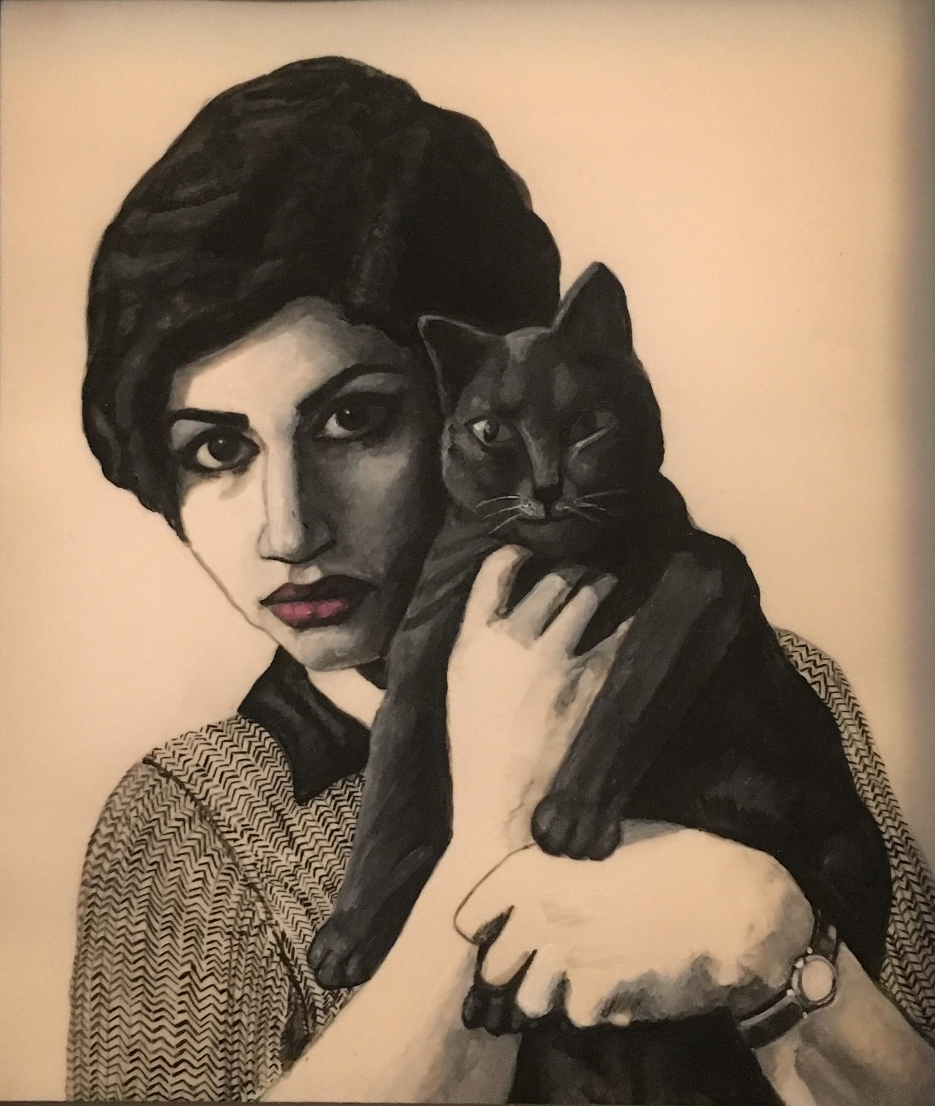 Zinat Moadab went into self-imposed exile in the United States with her filmmaker husband in the early 1970s and continued to work in the theater. She was one of the lucky ones. Other cultural figures in the portraits were victims of a society that oppressed women both before and after the 1979 Revolution. Under the Shah’s pro-Western autocracy they were given superficial freedoms but punished for their creativity and sexuality; under Khomeini’s Islamist theocracy, they were forced to renounce any public role or risk arrest. Many died tragic and premature deaths.