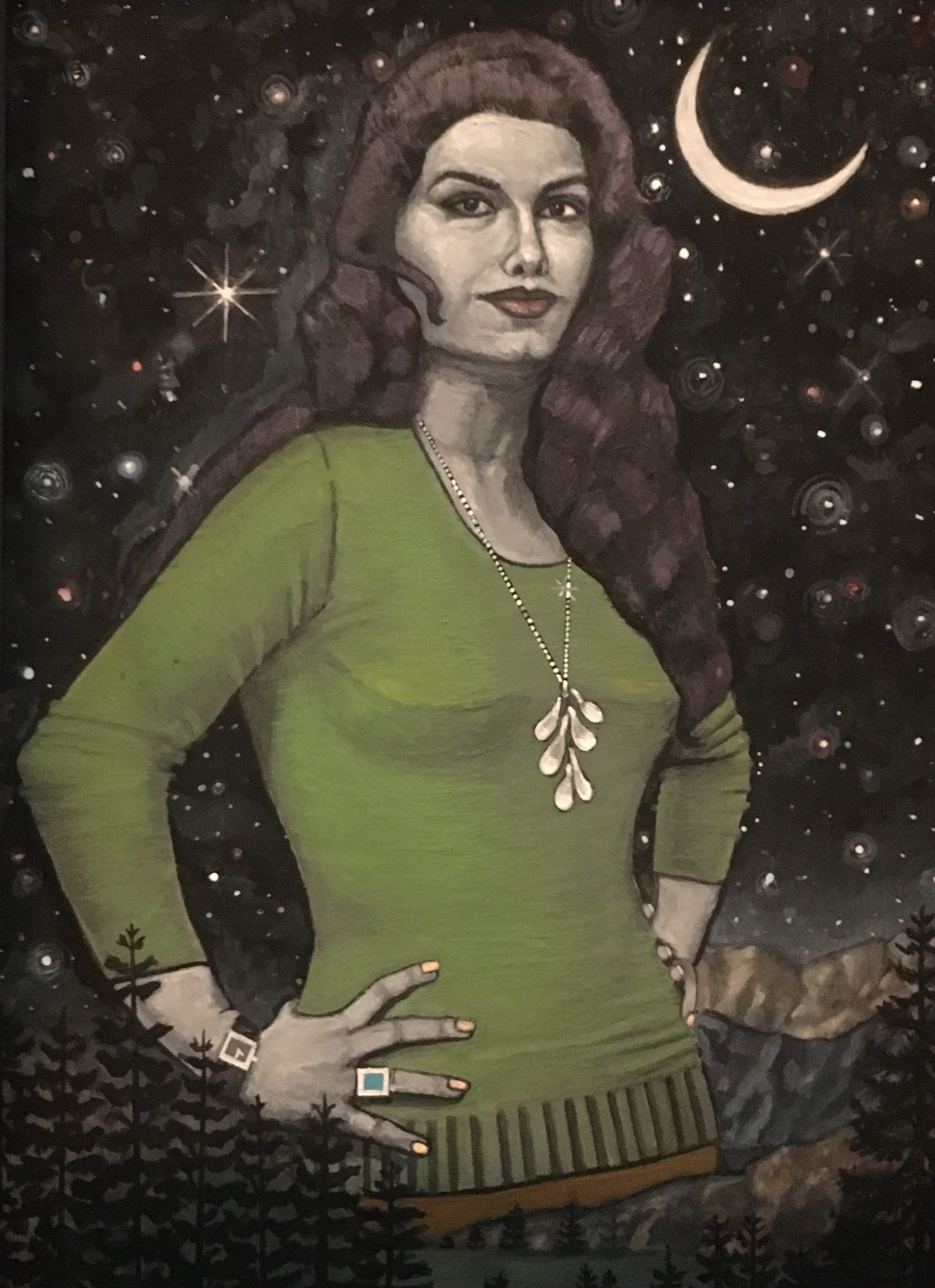 Using the ancient medium of egg tempera, Sokhanvari spent up to six months painting each portrait. When she started work on this exhibition back in 2019, she couldn’t have predicted how heartbreakingly timely it would be. Last September, 22-year-old Jina (Mahsa) Amini died in police custody under questionable circumstances after being arrested by the Guidance Patrol — Iran’s religious morality police — for wearing her hijab too loosely. This sparked ongoing mass protests across Iran and Kurdistan, which have been brutally repressed by government forces. The protestors’ chant of “Woman, Life, Liberty” could be a fitting subtitle to Sokhanvari’s exhibition. Her women — defiant, sexy, glamorous — are symbols of life and a liberated future.