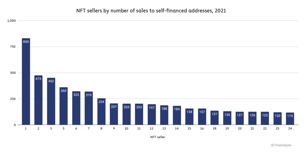 Researchers at Chainanalysis found that traders are artificially inflating the value of NFTs by selling tokens to themselves.