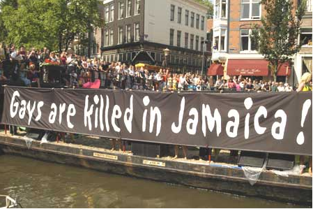 In 1992, Jamaica’s hostility to LGBT people was catapulted into the limelight when international focus fell on Reggae star Buju Banton, whose infamous dancehall hit “Boom Bye Bye” [posted below] chanted anti-gay rhetoric suggesting that “battymen” (a Jamaican term for gay men) be set on fire and shot. Musicians Elephant Man and Bounty Killer, who also aggressively encourage the killing of gay people, later continued this rhetoric and further entrenched the cultural bias.