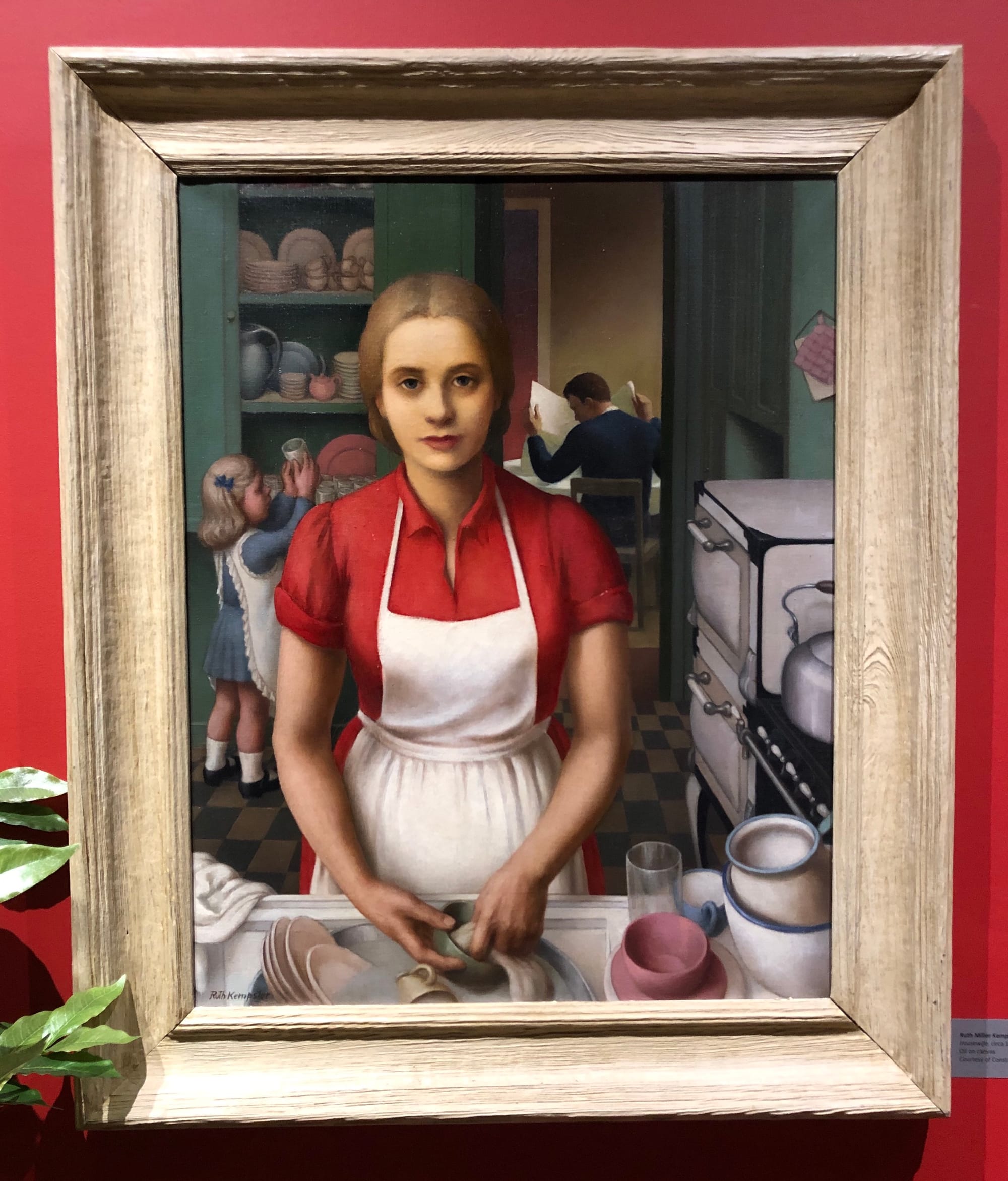 While the relationship between these artworks and broader regional histories can be muddled due to the sheer size and scope of the exhibition, there are plenty of individual stories, formal innovations, and curatorial possibilities to be explored. Ruth Miller Kempster’s painting from 1935, for example, portrays a woman washing dishes, with her child and husband in the background. The almost expressionless rigor with which the woman performs her household task, and the inner life the artist withholds from the viewer, makes the subject a prototype for Jeanne Dielman, the protagonist of Chantal Akerman’s 1975 film about the status of women and domestic labor under patriarchy. Just as that film took pains to capture on film much that has historically been excluded from cinema (namely, what is historically considered women’s work), Something Revealed presents a century’s worth of the creative labor and accomplishments of women that might otherwise be hidden or forgotten.
