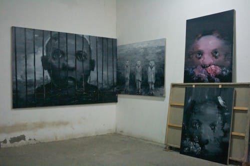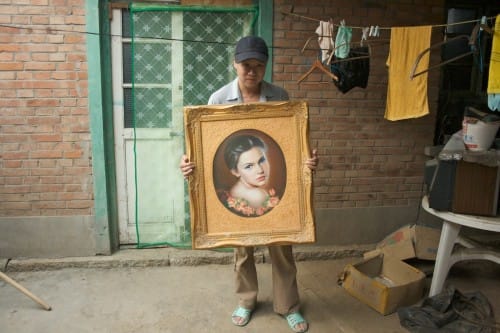 Song Zhuang is basically a dusty main road. The village’s one bus stop straddles the big street with a rusty orange awning on either side; one sides goes back to the city, the other runs still farther out to smaller villages. On either side of the road stretch art galleries, studio complexes and art supply stores, complete with figures stretching enormous canvases outside on the sidewalk, ready for sale inside. If you thought Chelsea was something along the lines of an art mass production machine, think again.