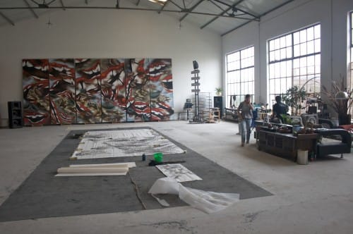 Lu Lin’s place is even nicer than Old Tang’s, the warehouse ceilings perforated by skylights, a personal assistant on call, cigarettes from Shandong, and green tea in glass teacups at the table. He paints towering canvases that move between traditional Chinese painting and modernist abstraction, swooping dashes of bright color over quiet passages of watercolor washes. He sells them himself, preferring to work outside of the mainstream Beijing art world of the 798 District and commercial galleries.