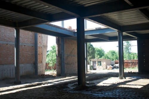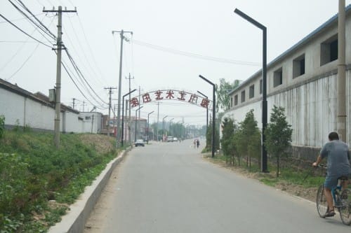 Song Zhuang is basically a dusty main road. The village’s one bus stop straddles the big street with a rusty orange awning on either side; one sides goes back to the city, the other runs still farther out to smaller villages. On either side of the road stretch art galleries, studio complexes and art
