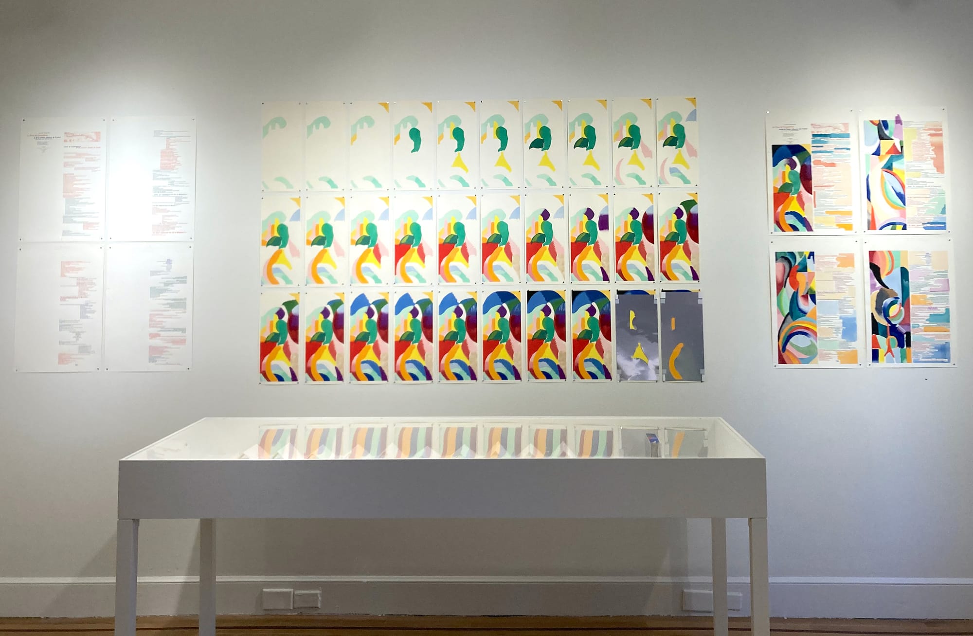 These costume sketches also lay the groundwork for the show’s most impressive section, focusing on her company, Maison Sonia, and the textile designs she produced in the 1920s. This room is densely packed with sketches, color cards, fabric samples, wood-printing blocks, and garments, as well as Delaunay’s self-drafted promotional materials. A film clip showing models wearing her garments is remarkable both as an early color film reel and as a rare chance to see these clothes in motion. The comprehensiveness of her vision comes across most clearly here: everything is meticulously considered. The Bard Center’s floor plan allows the narrative to be broken up in a way that highlights the diversity of Delaunay’s output without creating the illusion that this represents the entirety of her career. Instead, it feels like we get to glimpse pockets of her work, and feel her expansive and collaborative production.