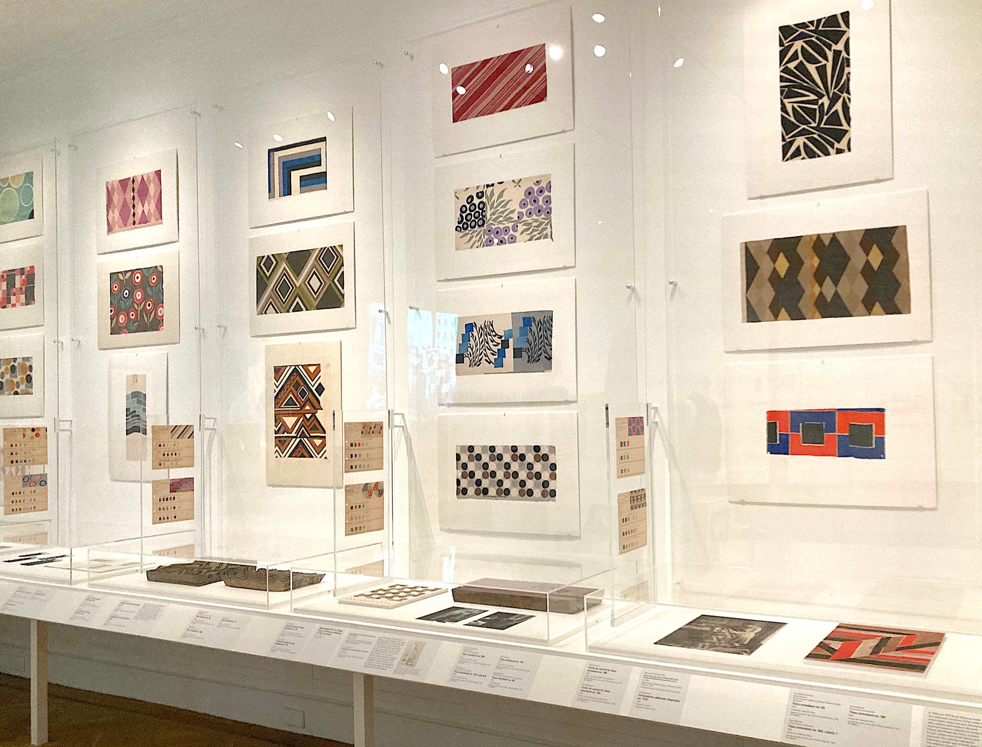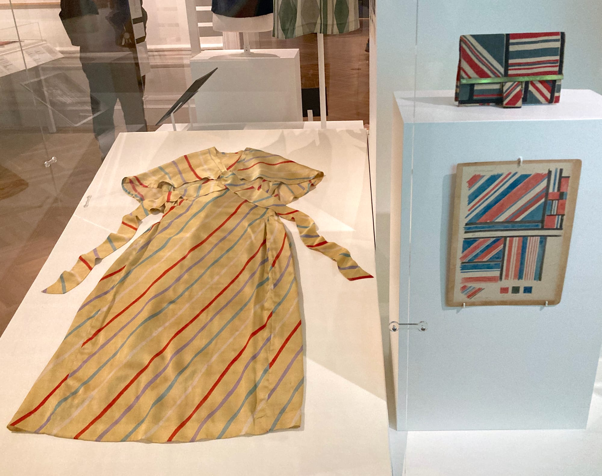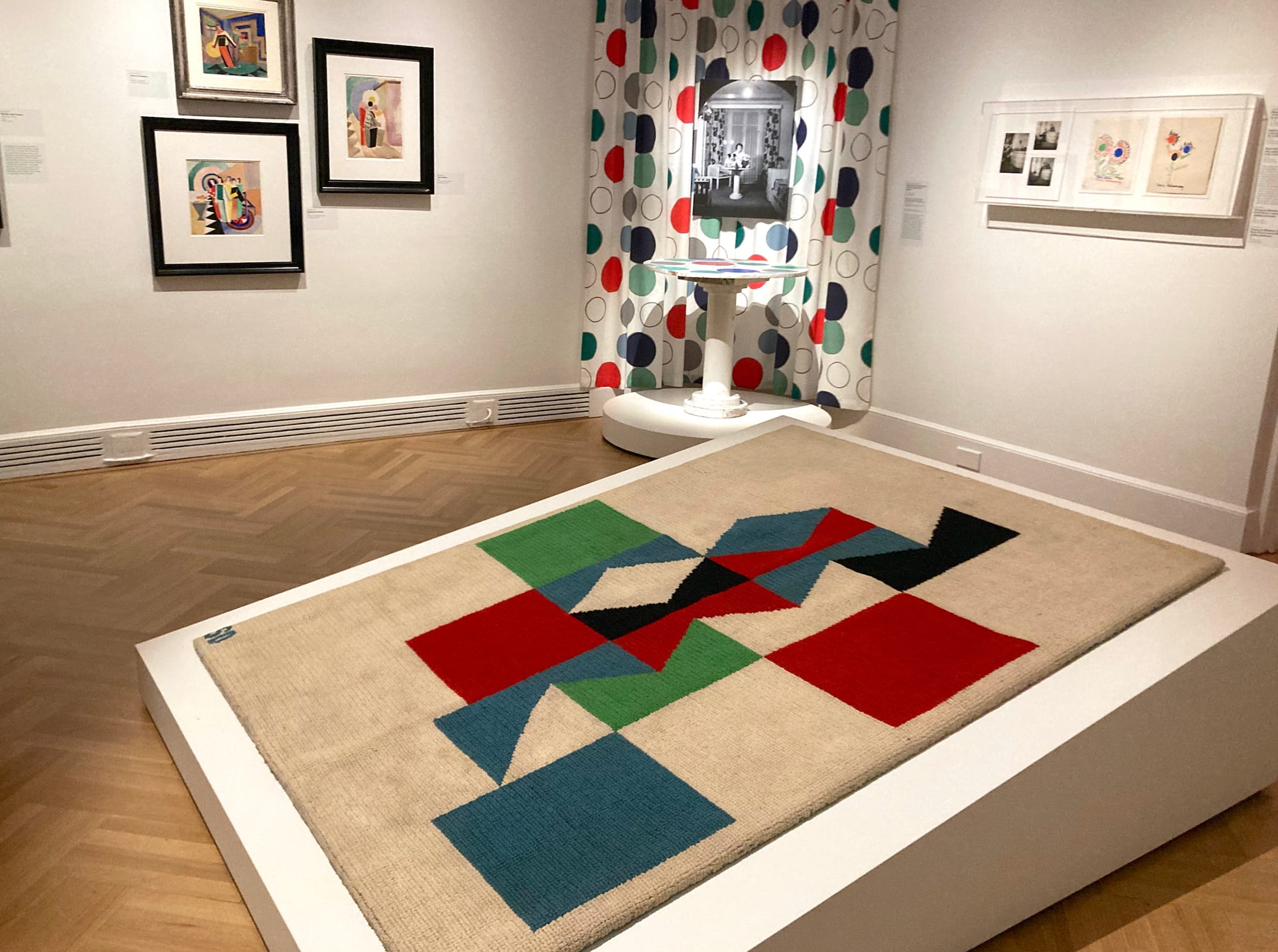 Upstairs, the wartime period is represented mostly by an underwhelming digital display. One room focuses on the revival of her career from the 1950s through the '70s, a period marked by the licensing of her work, and expended production. While Delaunay’s style always feels fresh, a few objects look a little dated and this section, indirectly connected to her designs, lacks the energy of the earlier galleries. The one section that doesn’t live up to the rest is that of her interior and furniture designs, not because these are weaker, but due to the difficulty of presenting them in this space. We’re given a small reconstruction of one corner of a room, some sketches, and a piece of furniture she may have designed. Short of rebuilding an entire room, it’s hard to evoke the complete, coherent spaces that she envisioned, and this gallery felt like something of an afterthought compared to the rest of the exhibition’s depth.