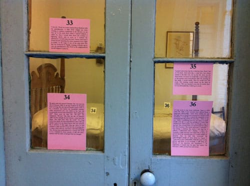 An introductory wall text attempts to link Calle’s story to that of the Baroness Pontalba, or at least the role the Baroness plays as the spiritual proprietor of the historcial reconstruction that the 1850 House represents:
