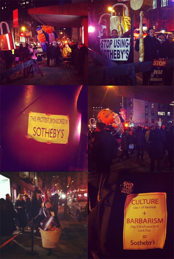 Sotheby's Art Handlers & OWS Protest Whitney Biennial VIP Party