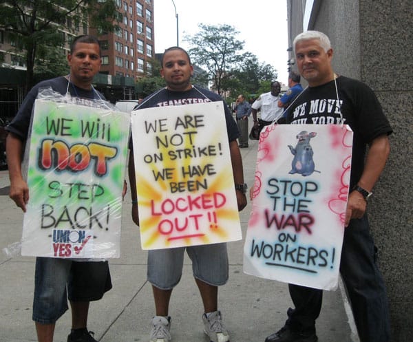 On July 29th, Sotheby’s Auction House locked out its crew of over forty art handlers represented by Teamsters Local 814. For the past eight weeks, the art handlers have been picketing and handbilling outside of Sotheby’s to raise public awareness about their struggle to defend jobs.