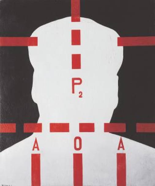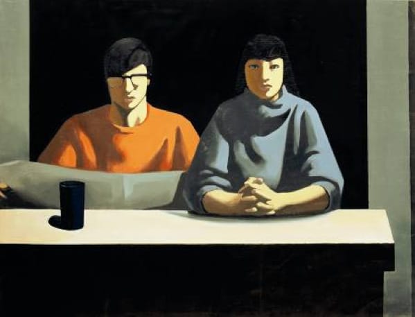 Likewise, Wang Guangyi’s “Mao Zedong: P2” (1988) (above) lacks the bright colors and pop punch of the artist’s later work, but it gains from an austere composition, whittled down to a precise iconography. Geng Jianyi’s “Two People Under a Light” (1985) is the most surprising. The artist uses an Edward Hopper-like sense of color and ambiance to represent the disconnection of the urban intelligentsia; the two fashionable figures don’t touch.