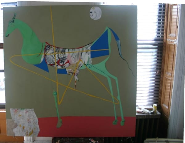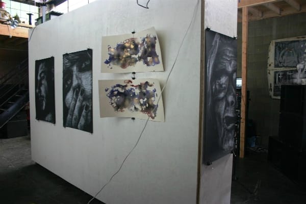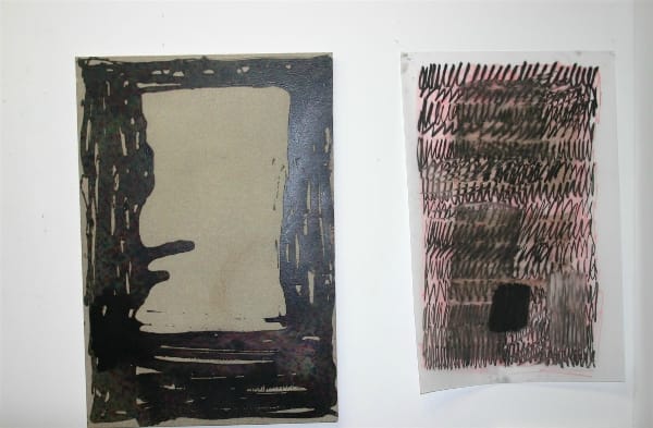 In the back I was happy to discover frenetic, joylessly colored and composed paintings by Allie Pissaro-Grant. Her pigment heavy, gradient swathes of blurry color and scribble resonate on a visceral level and remind me of so much of the great painting coming out of Bushwick. I was impressed that these canvases and works on paper were able to radiate confidence and power, even in the somewhat dingy studio environment.