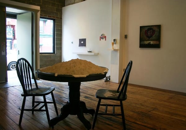 Jillian Rose’s “when I was a child I played a Piano that was out of tune and missing keys” was a mixed media installation I found arresting for its on the rocks emotionality. Walking into the studio spaces, Craig Hein’s collection of brightly colored, child illustration-esque canvas and clay sculpture-paintings blend conceptual underpinnings with disarming childishness into a combination that is jarring and unfamiliar. Tom Keating’s array of ultra gritty, semi-cartoon imagery reads ultra gritty and personal and celebrates a lo-tech, handmade aesthetic.
