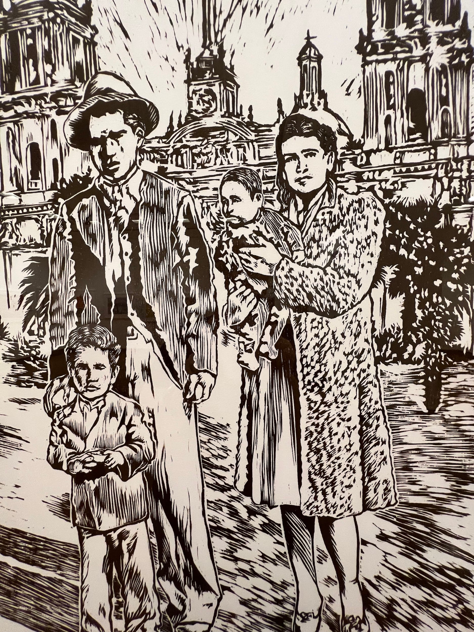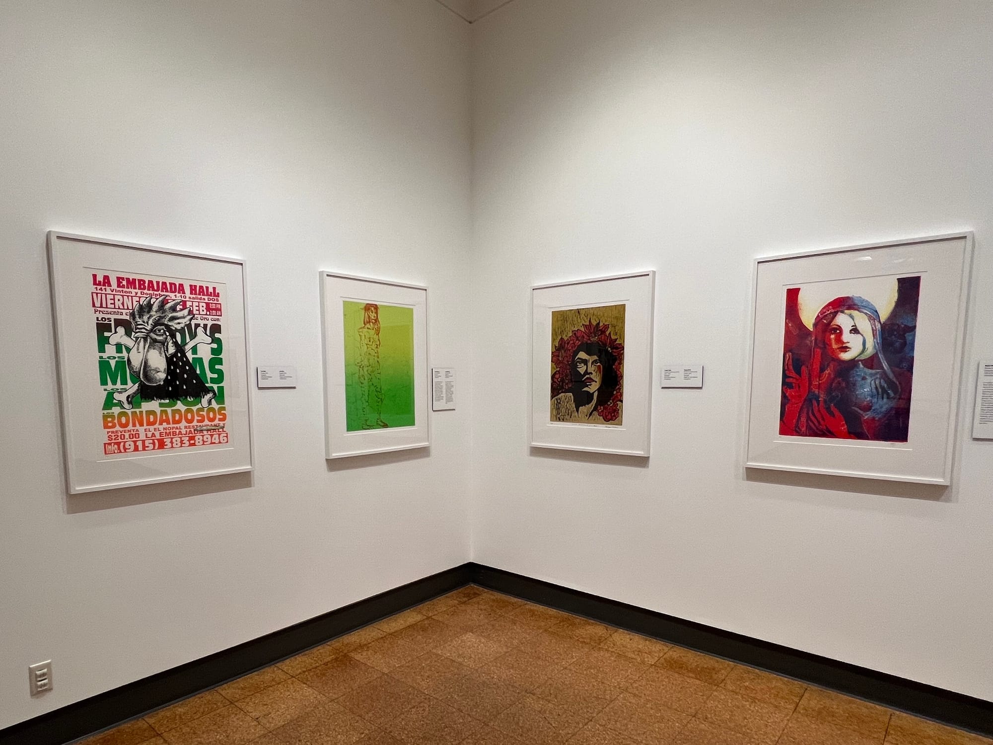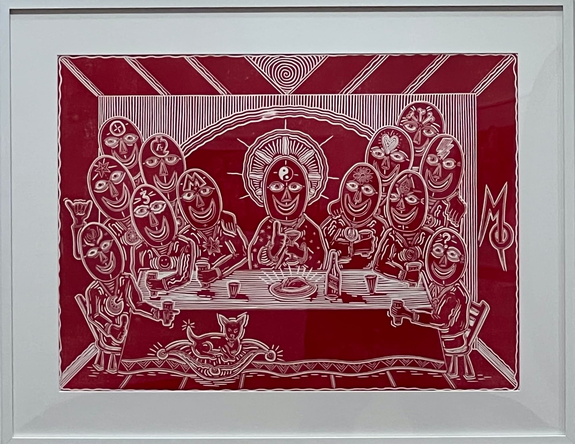 Humor and art historical references abound, in works such as Martin Quintanilla’s “El Ultimo Taco” (relief print), created using Mexican shoe rubber and a wooden spoon.