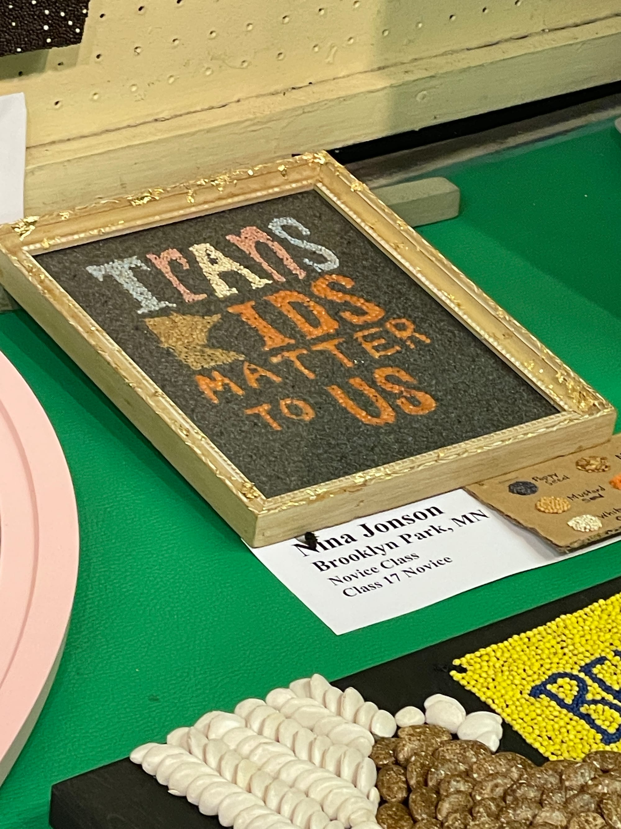 I was struck not just by this craft's painstaking nature but also by the diversity of its subject matter, which ranges from impressive portraits and still lifes to timely pop culture references and biting political commentary. This year’s show included tributes to lost luminaries (Judy Heumann, Paul Reubens aka Pee Wee Herman), hot pink Barbie memorabilia, OceanGate (“the little sub that couldn’t”), excitement over Minnesota’s marijuana legalization, displays of support for trans youth and adults, clap backs to Ron DeSantis (“Minnesota, where woke goes to bloom!”), and lots and lots of yacht-smashing orcas.