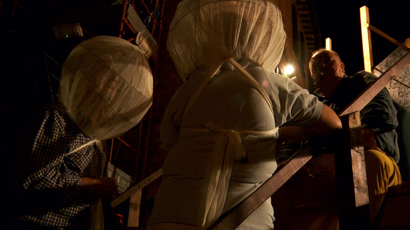 Such was not always the case. Although the quite simple staging and setting in the town’s main piazza have remained consistent, a number of the earlier productions appropriated classical narratives in the form of costume dramas. Then one year around five or so decades ago, with hardships mounting as their land-driven ways of life became increasingly obsolete, the townspeople decided to remove the impersonal mask of traditional narratives to tell, instead, their very own story — and thereafter, many more of their very own stories.