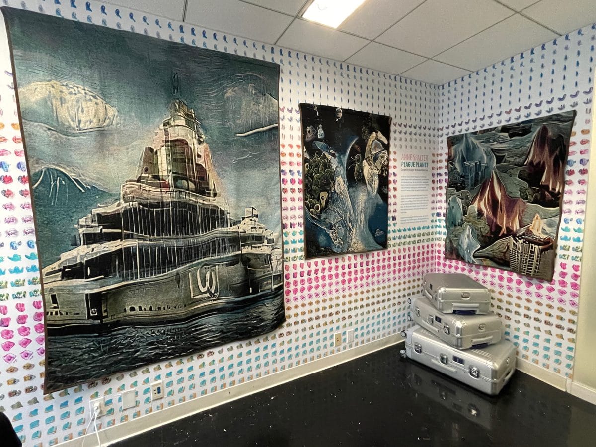I kept asking artists and curators why they thought there was a great deal of fabric and woven works. Macauley Norman had the most convincing explanation as he talked about spiders, which he uses extensively in his current body of work presented by Deep Space Gallery, and how the arachnid fixes its web when it is damaged (echoing the feelings of pain and stress we have all felt in the last year and a half) and how the repetitive nature of such work can be meditative.
