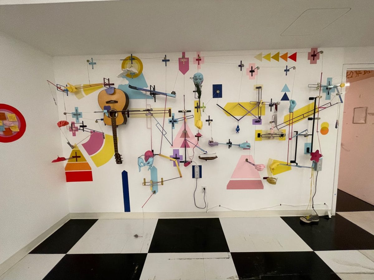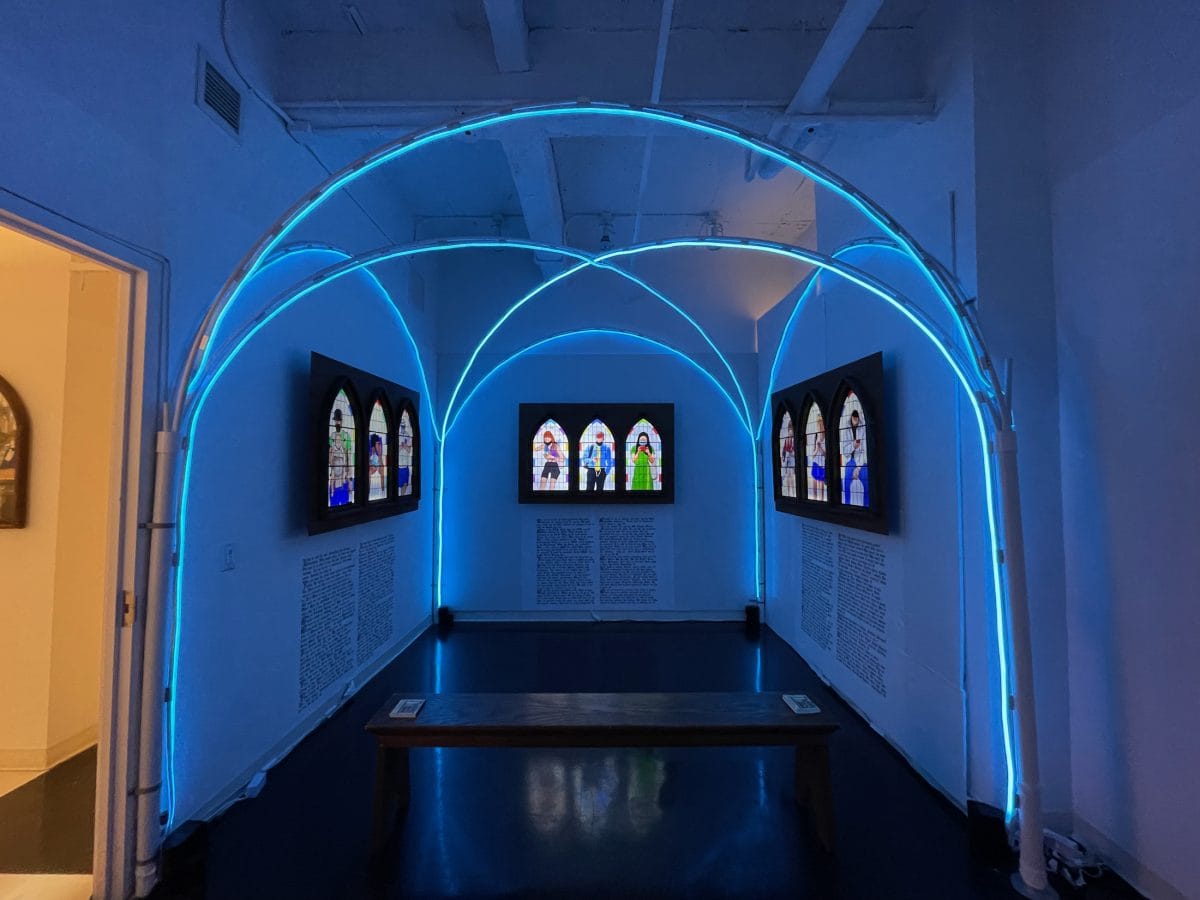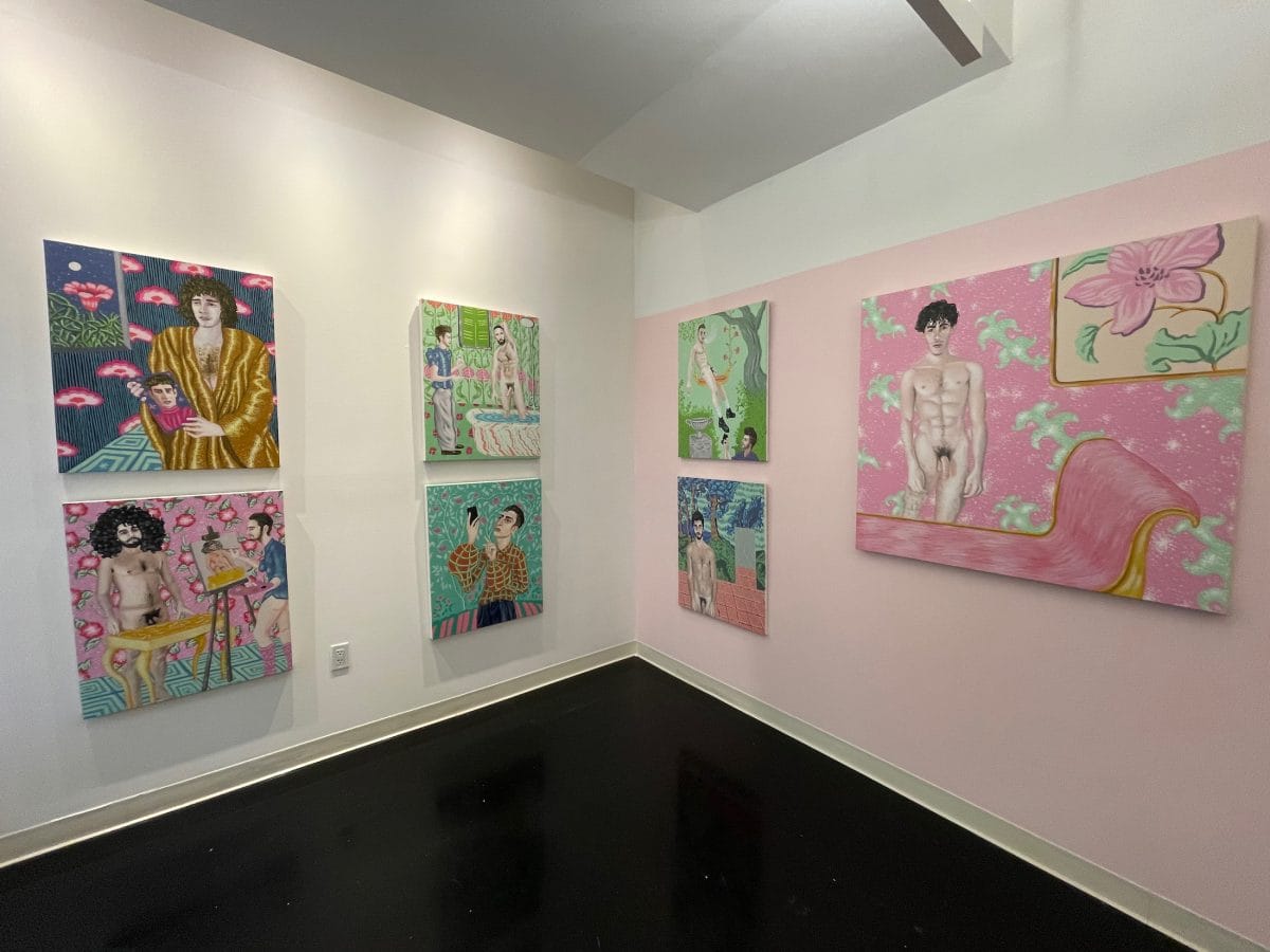 There is a wide range of painting on display, including Kyle Hittmeier's funny and strangely alluring works about freeports that use images of post-it notes and the Cayman Islands,Daniel Morowitz's vibrant drawings and bold use of color in what appears to be mythology inspired images, andBruno Leydet's beautifully queer canvases that feel quite intimate and quirky. And since it is 2021,M. Charlene Stevens's Chapel exhibition includes a few NFTs for sale, though it's worth noting that the whole digitally inspired show is beautifully coherent.