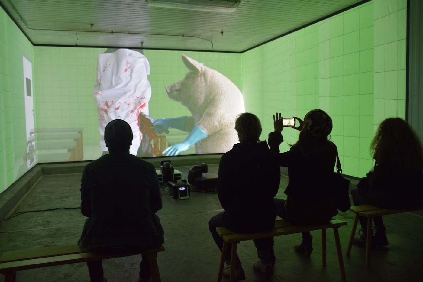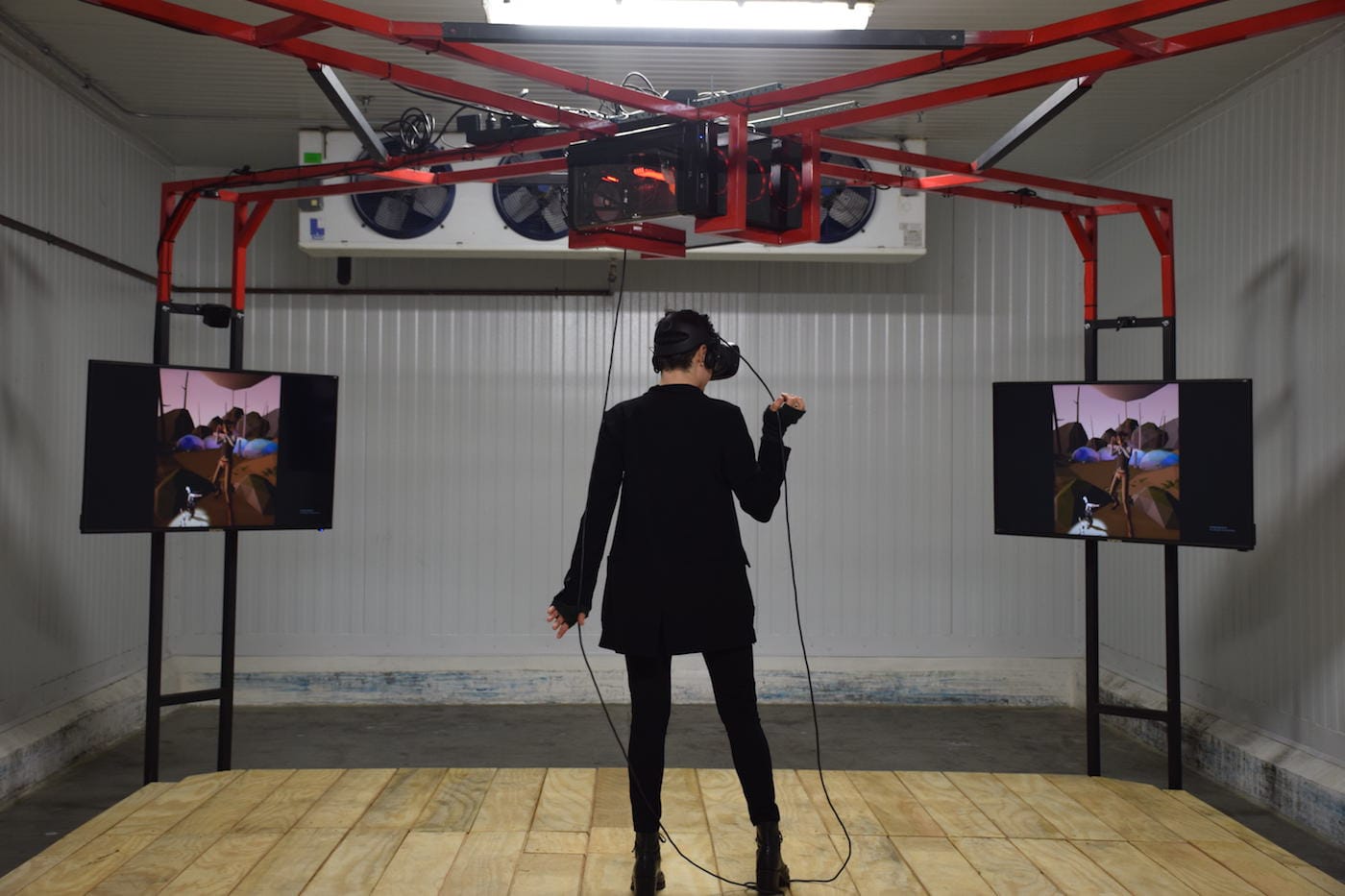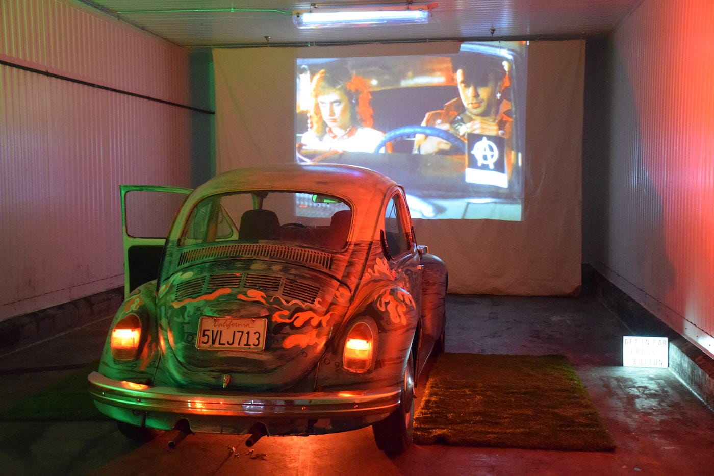 Reflecting the gamification of the art world, a few exhibits merged virtual reality techniques with art installations. A notable one was Filip Kostic’s installation in which a player outfitted with VR goggles stepped onto a stage that transformed into a scene from the Wild West. Others, like art collective Fall on Your Sword, took a step back in time to bring viewers an authentic drive-in movie experience as they sat in a 1972 Volkswagen Beetle with heavily vibrating car seats while watching movie clips of amorous teens in cars.