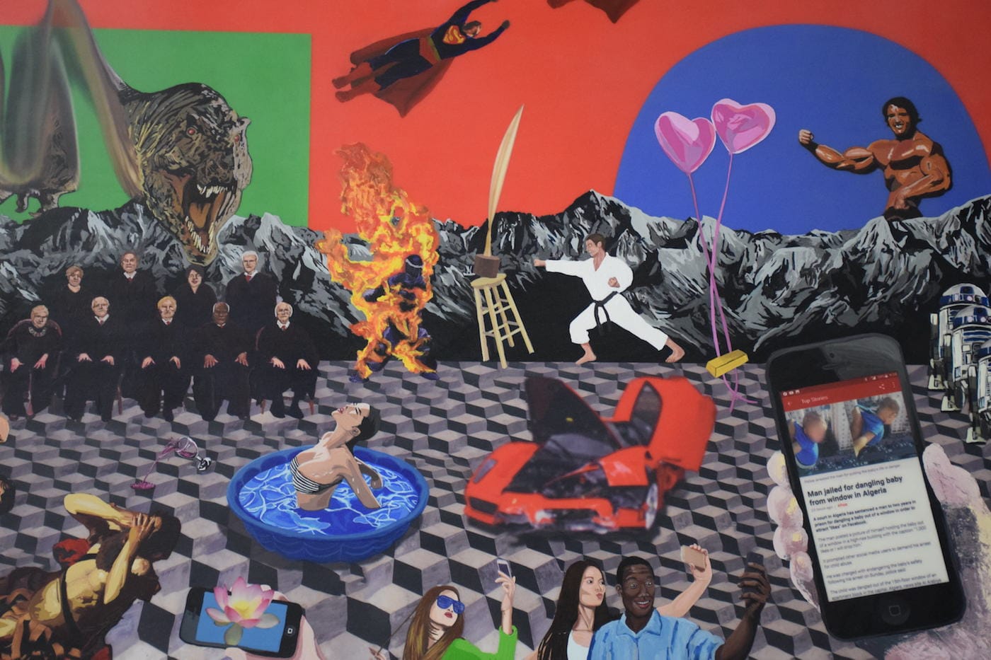Some LA-based galleries that made a splash at the fair included E.C. LINÁ, whose artists grappled with everything from race to wildfires to Tide pods. Other local groups like Outback Arthouse tackled the double-edged sword of social media and the selfie.