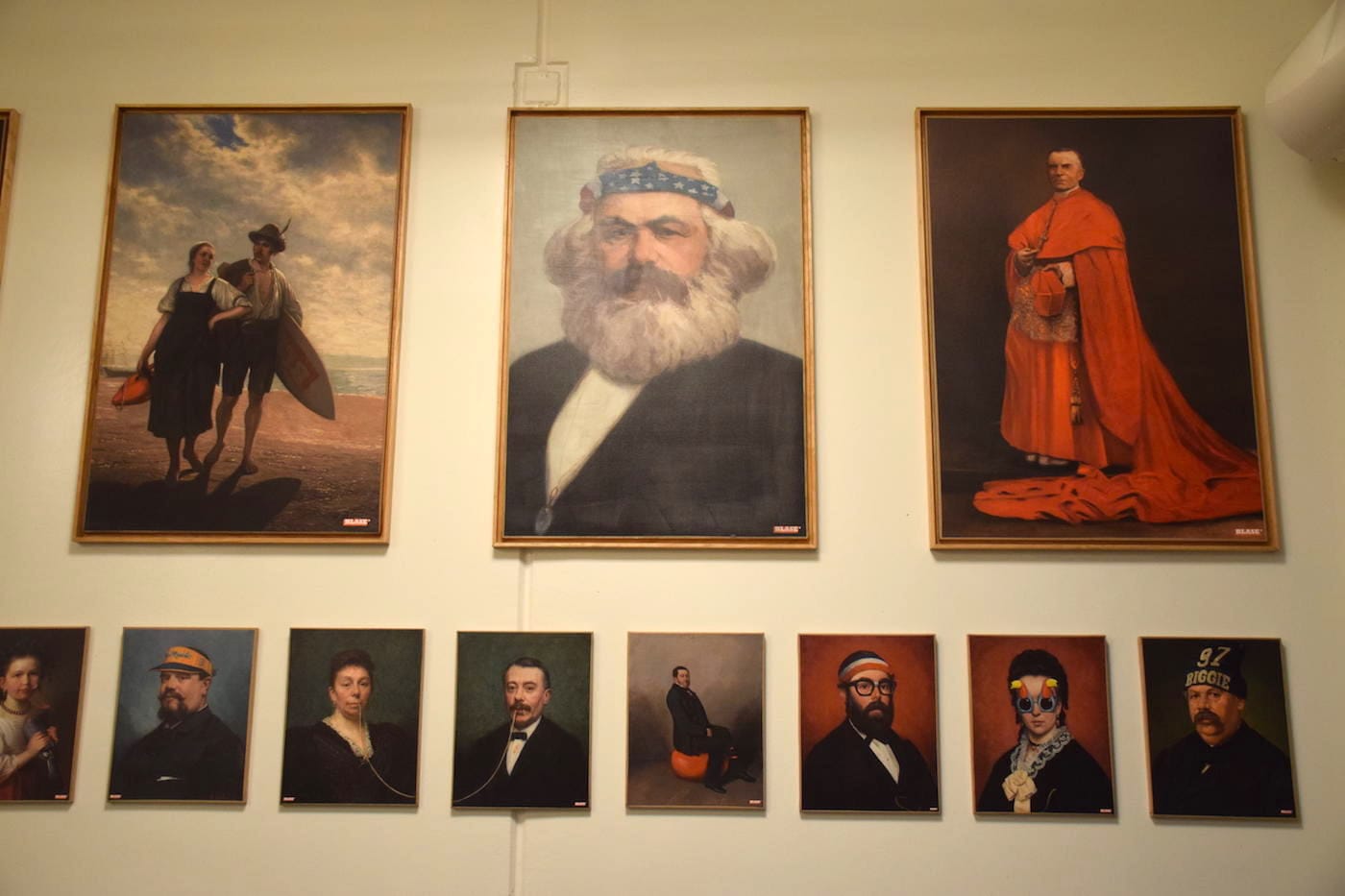 No show like this could be complete without an indictment of the two-faced nature of religion, class, and politics. Blase, a French artist, filled this role by repurposing old portraits of aristocrats with a sardonic twist, adorning them with beauty queen sashes and MAGA hats and exposing sex abuses in the Catholic Church.