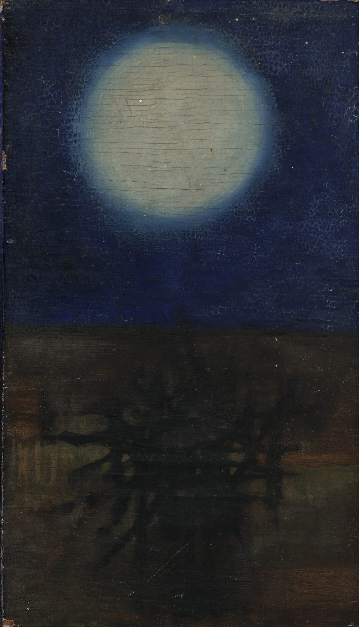 The exhibition also highlights instances of poetic alignment between the two artists. One gallery wall is lined with nine figure studies by Sara VanDerBeek, layered C-prints in seductive neon colors, their titles invoking the rising moon and the setting sun. Nearby on the floor a white cylinder lies on a bed of cloth: her “Moon” (2015). Overlooking them is a small painting made by Stan VanDerBeek ca. 1955, “Untitled (Lune Light)”: a full moon in a deep blue sky over a simple landscape. Here, as throughout this show, bodies in space — sculptural, filmed, photographed, painted; dancing, abstracted, celestial — are fundamental to the artists’ bodies of work.