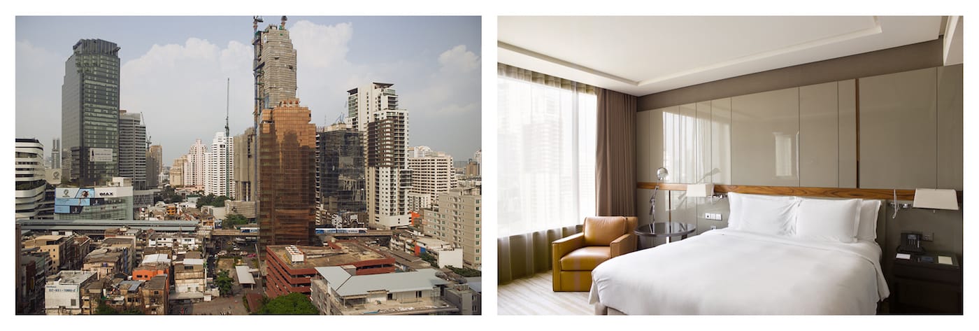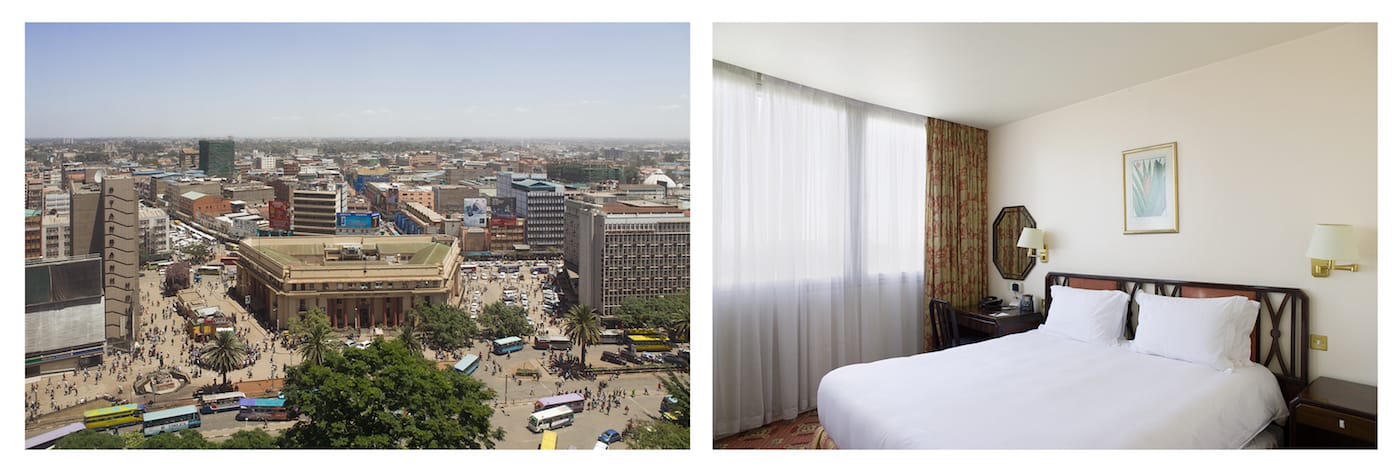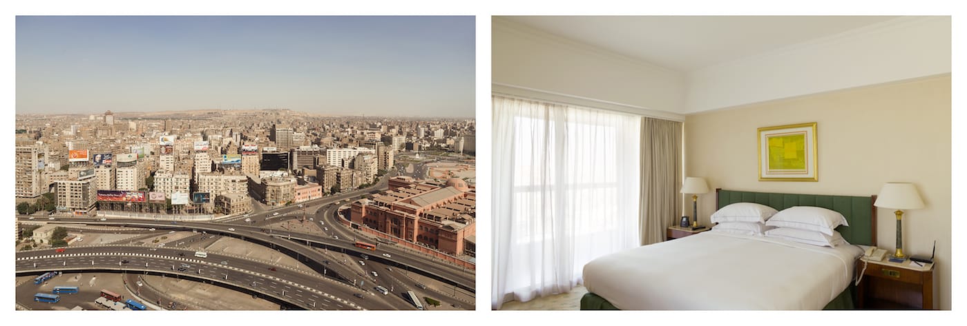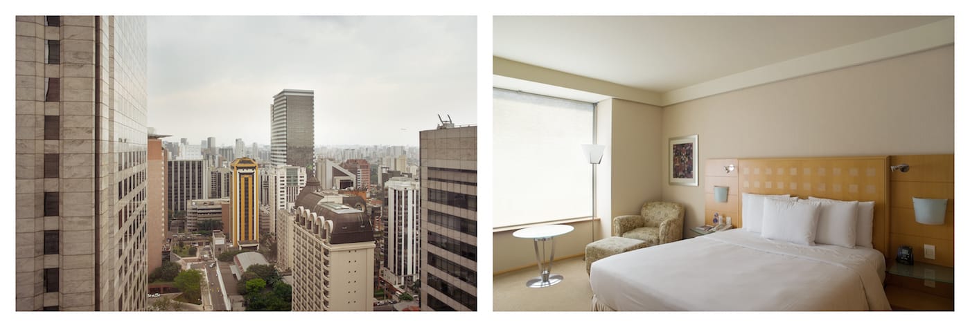 No matter what major city a traveler may visit, the white beds of the Hilton Hotel await, ready with their clean stacks of pillows and neatly tucked sheets. Even the perspective from the wide window, gently masked with a light curtain, might seem familiar, with the swirl of foreign traffic and skyscrapers safely muted below. Over the course of a year, Swiss photographer Roger Eberhard visited 32 cities on five continents, staying in a standard double room at the Hilton, and documenting the room and its view.