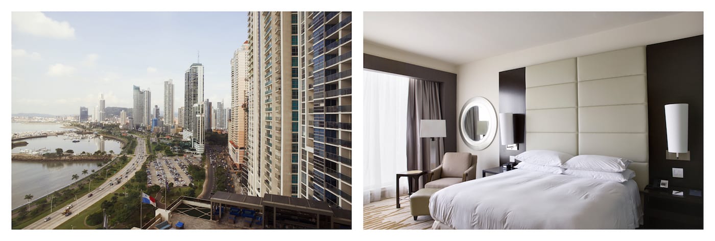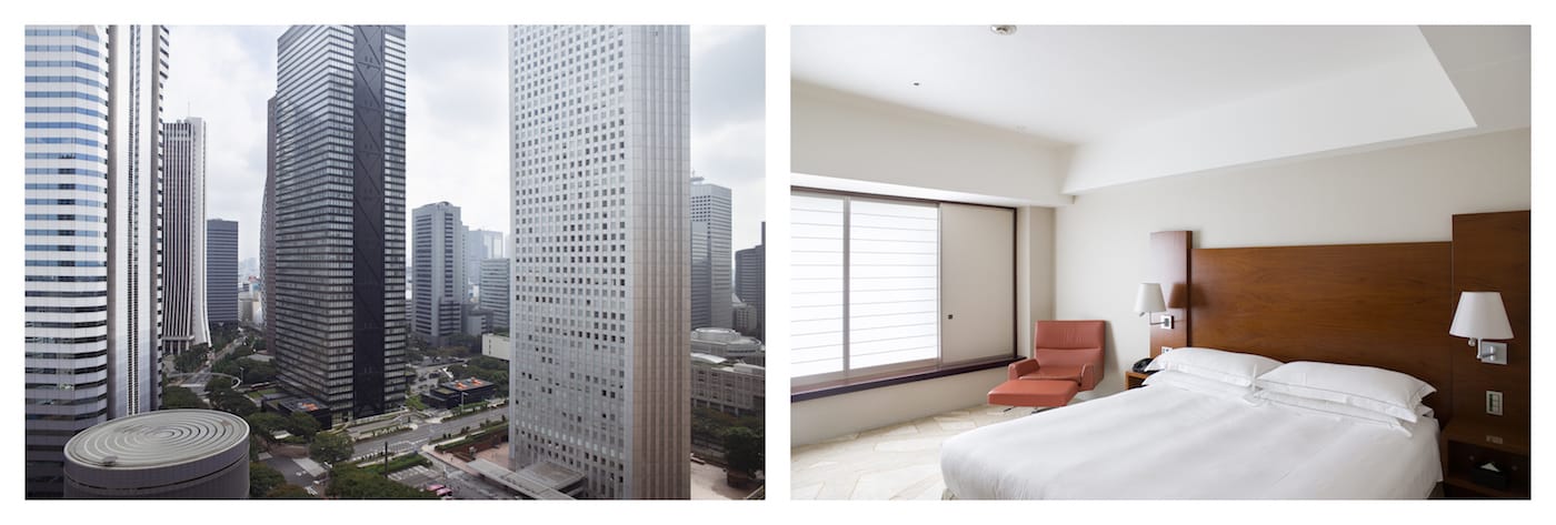 Founder Conrad Hilton proudly proclaimed: “Each of our hotels is a little America.” And that “standard” which Eberhard photographed is tightly controlled by the hotel chain, down to the alarm clock, side table lamp, and nearby armchair. Eberhard’s images do capture local deviations, such as a glass chandelier in Venice, or a black striped headboard in New York, and sometimes the views are distinct, like the sweeping shore of Panama City. However, as with a dreary beige façade consuming the view in Berlin, or the nondescript towers in Tokyo, often they feel like a liminal time and place.