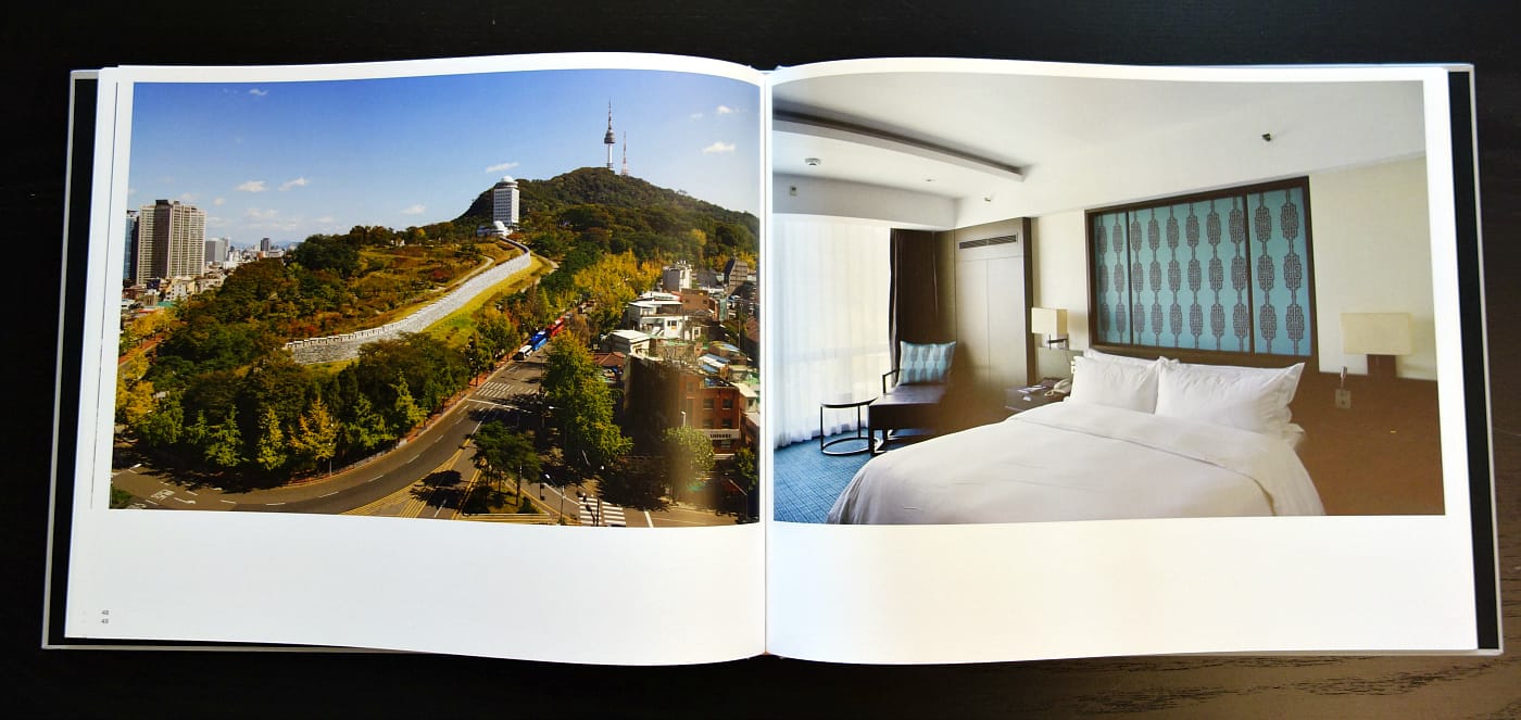 Standard, out February 15 from Scheidegger and Spiess and distributed by University of Chicago Press, includes a diptych for each destination. The locations are on the back of the monograph, starting with Berlin on May 17, 2015 and ending with Moscow on May 16, 2016. Essays in German and English consider the globalization represented by this “standard,” the appearance of which might have been within the first Westernized skyscraper in an urban area. “Hilton Hotels were among the first high-rise complexes in the city centers of travel metropolises, and exuded the glamour of an American utopia,” writes art historian Franziska Solte. “The foreignness of the immediate surroundings could be observed from inside through the broad glass fronts, from a safe, elevated perspective, and occurs as a distant, background spectacle.”