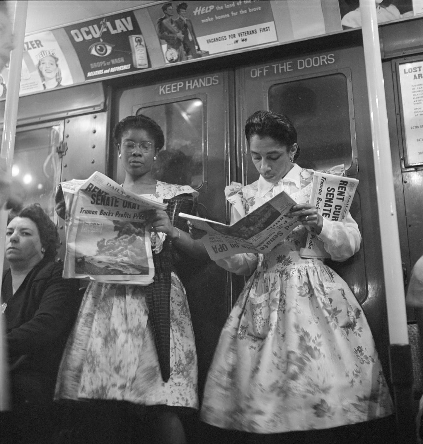 The March 4, 1947 issue of Look contained Kubrick’s first long-form essay, a six-page article featuring 29 of his candid and staged photographs showing lovers in intimate embrace, as well as commuters reading and sleeping on the train. Using available light, he surreptitiously snapped photos with a concealed camera, creating imagery that recalls one of his mentors, Weegee (whom Kubrick would go on to hire as a consultant for Dr. Strangelove).