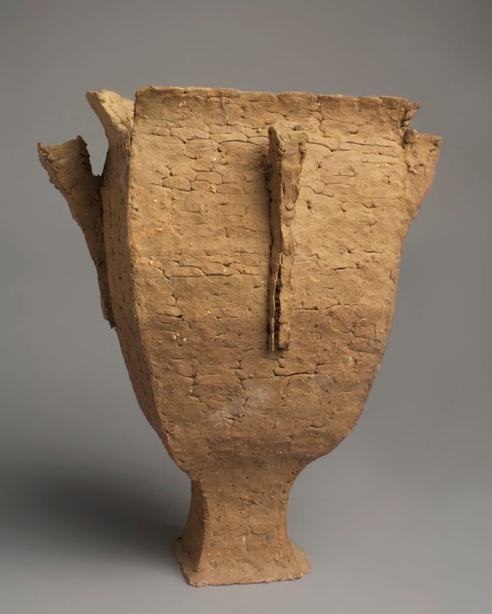 Rosen has drawn inspiration from vernacular architecture as well as the history of vessels. His sculptures never become purely visual: this is what distinguishes his work from many other sculptors working with clay. His pinched coils and flattened pieces of clay insist on their undistinguished material existence. The insides of his vessel-like pieces are roughly layered. They invite scrutiny as well as encourage physical contact. The coils are like extrusions, something squeezed from a tube or a body. They share something with the rubber tubing penetrating Eve Hesse’s “Accession II” (1969). There is a tactility and a sensuality to Rosen’s sculpture that feels primordial. At the same time, there is nothing seductive, charming, or witty about any of the works, which makes them even greater.
