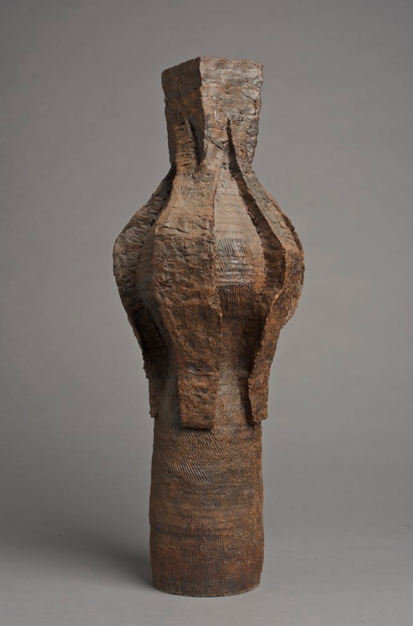 To be honest, until I learned about Rosen, I had no idea that Bennington even taught ceramics, that’s how little attention the department or medium were given in any story about the school’s role in postwar art, starting of course with Helen Frankenthaler. Some of this invisibility is due to Rosen’s self-effacing personality. He belongs to a generation of sculptors working in ceramics that includes Peter Voulkos, James Melchert, Robert Arneson, and Betty Woodman (all born between 1924 and ’30), and is the least known of this group, which is largely his own doing. Still, Rosen’s ceramic sculptures are a revelation: they are like a country that many of us never knew was there until now.
