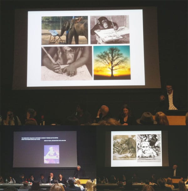 The most interesting aspect of his segment was when he demonstrated how he digitally renders galleries to figure out where his wall drawings should be placed before he creates them IRL. The silliest part of his presentation was when he presented a grid of images that showed animals and a child drawing along with a tree, which he said could “draw” by attaching a drawing instrument to its branches and letting the wind do the rest. Yeah, artist Tim Knowles already did that, though McGinness didn’t mention him by name.
