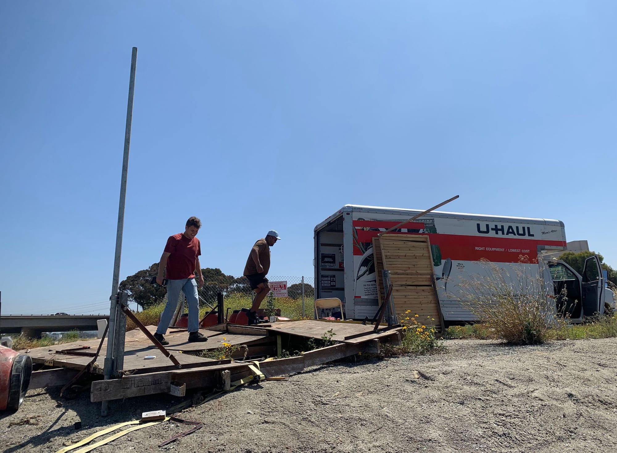 After the raft was removed, Wells and Night Gallery applied for a permit to be on the site, called a flood access permit, and Public Works allowed them to leave the structure on the embankment during this process. At this point, Wells discovered the jurisdiction was more complex than he realized, as some of the land is privately owned. On June 14, he received a call from someone who claimed they owned the property and was upset that the raft was there.