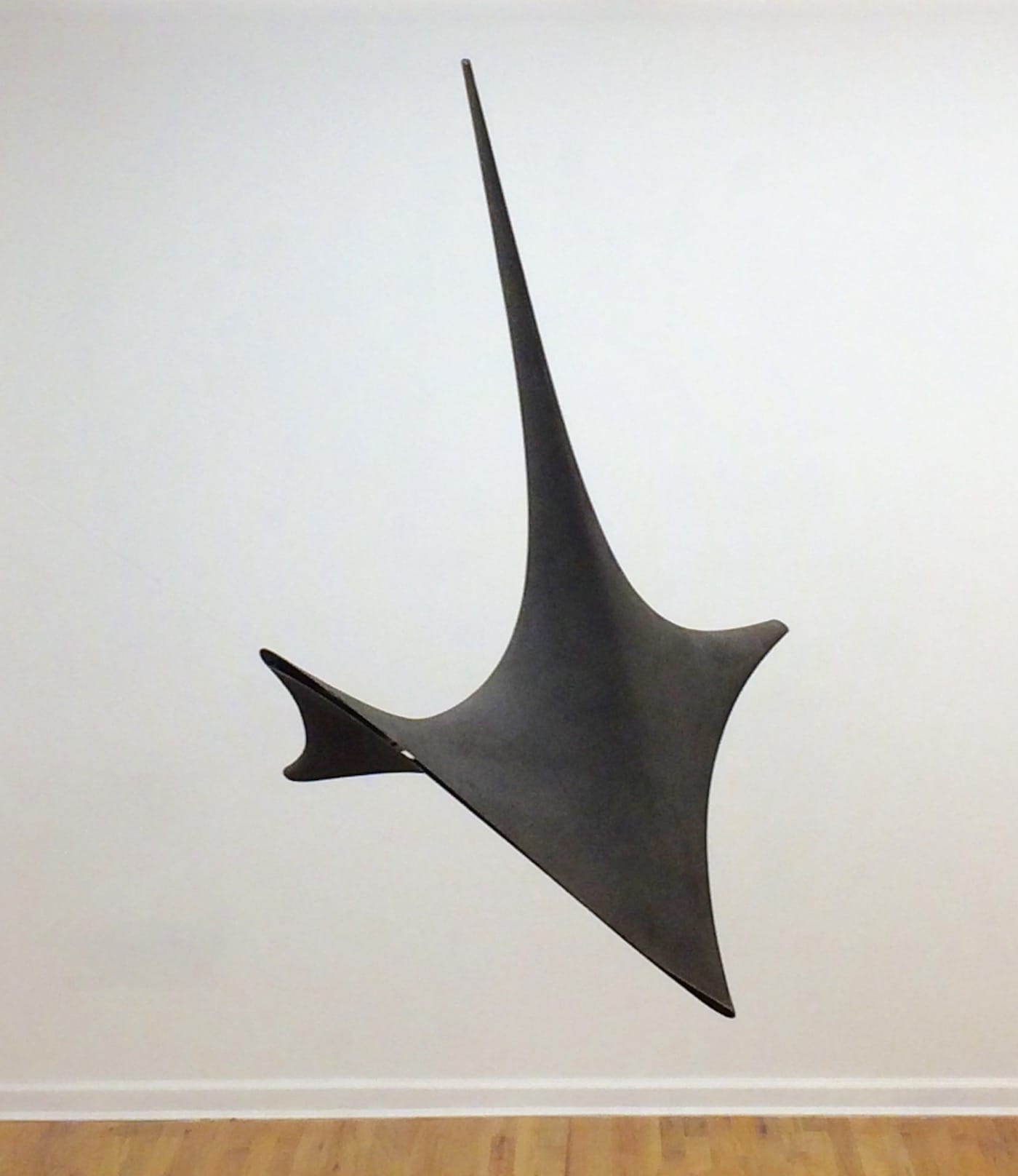 The first thing that made Keister an outlier is the siting of his sculpture, which you didn’t back into (in Barnett Newman’s phrase), but bumped your head against. At least that is what I did one evening, when I stood up from the kitchen table of the legendary collectors Herb and Dorothy Vogel, and smacked my head against one of the suspended, angular sculptures that Keister began exhibiting in the late 1970s, which he wittily called USOs (Unidentified Suspended Objects). Herb and Dorothy were not all that tall, and so for them this was never problem.