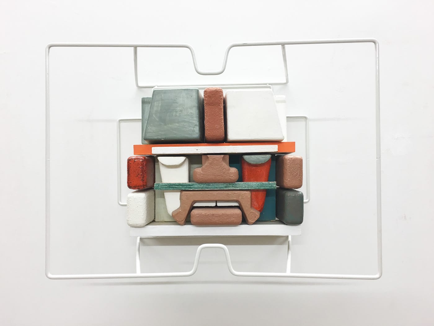 Keister has decided to tell a different story, one in which traces of the pre-Columbian world both persists and transforms itself. It turns the poison of our Styrofoam packaging into household gods, figures that remain other and remote, even as they sit on our walls looking at us with indecipherable expressions. By assembling them out of diverse parts, and, in some cases, placing them within a tubular frame, they regain some semblance of their psychic power. With these figures, Keister imagines an outcome different from what happened, suggesting that the story is perhaps not over.