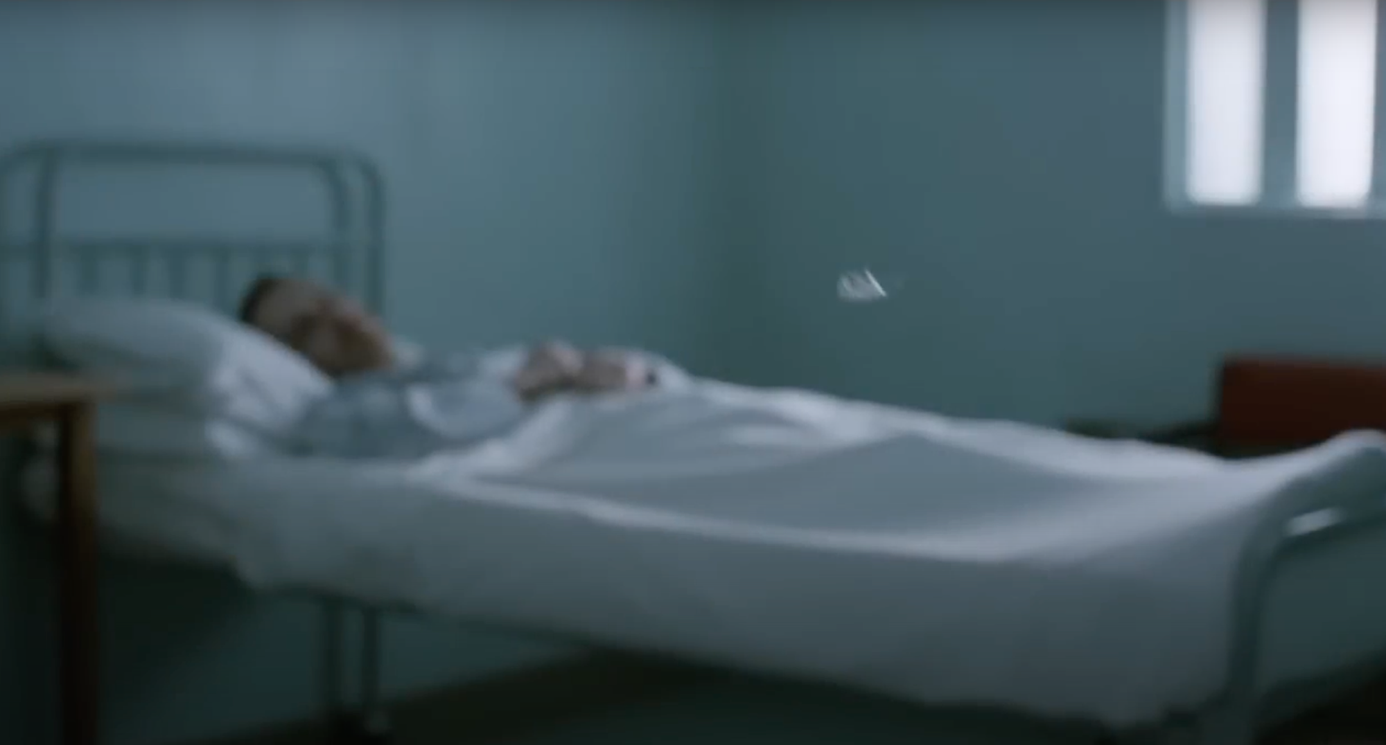 Sands’s frail body and open sores draws the prison medical staff in direct contact with his bodily ejections, much like the staff who cleaned the prison cells. As his starvation progresses, his body becomes weaker. In a prison infirmary bed, it looks almost weightless; a feather floats slowly in the foreground, appearing to be heavier than the man. Hunger’s final moments are stark and disquieting. Sands lies in bed, eyes wide open, in agony. When death comes, the stillness of his body connotes the finality of his hunger strike as a white sheet is pulled over his face. Sands, who was elected Member of Parliament while on strike, died 66 days into it. Ultimately, nine incarcerated IRA members died while on hunger strike. After their deaths, Prime Minister Margaret Thatcher, who had refused the strikers’ demands, relented, and granted them de facto political status.