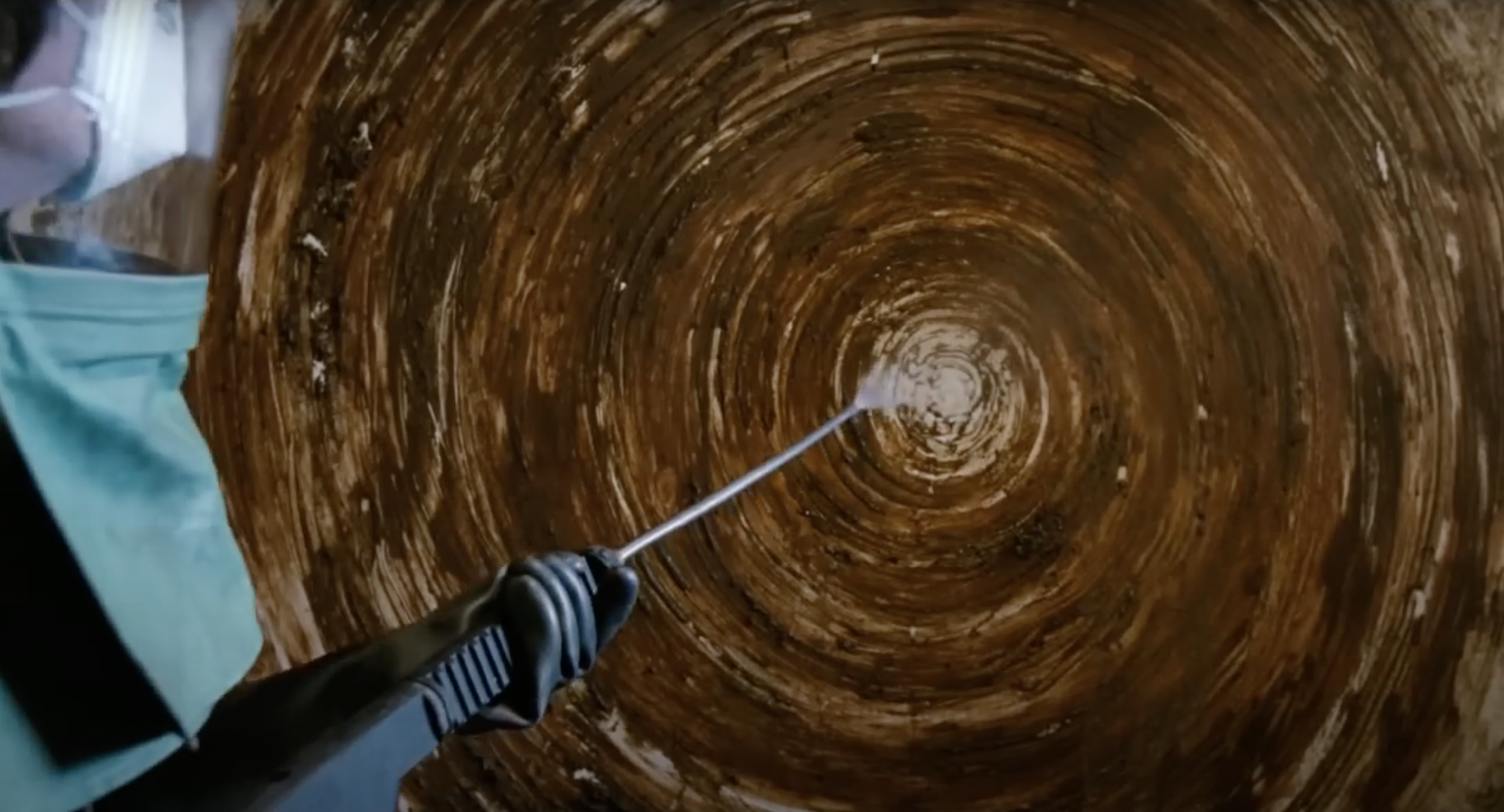 In the film, McQueen reverses the carceral gaze focusing on the protesters’ weaponization of their bodies, by showing the men confronting the prison staff. In one scene, a prison staff member is summoned to one of the protestor’s cells. The staffer is clothed from head to foot in protective gear and is carrying a high-powered water gun. As he begins to enter the room, he stops abruptly. Taking off his face mask, he stares directly ahead. An expression of dread and awe appears across his face. The camera pulls away to reveal what he’s looking at: a large concentric circle of excrement. He puts his face mask back on and begins to spray away the defilement. Yet in this disquieting scene, McQueen’s direction makes clear that the protesters have disrupted the boundaries of power and control.