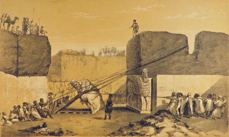 The British Museum acquired the vast cuneiform archive after their discovery by the British diplomat and archaeologist Austen Henry Layard, and then attained more tablets after numerous dig seasons from the late 1840s to the 1930s. The British Museum funded many of Layard’s later expeditions, and his richly illustrated publications became well known back in Britain, particularly his 1849 publication, published with a title and religious bent sure to attract English audiences: Nineveh and its remains: with an account of a visit to the Chaldæan Christians of Kurdistan, and the Yezidis, or devil worshippers; and an inquiry into the manners and arts of the ancient Assyrians.