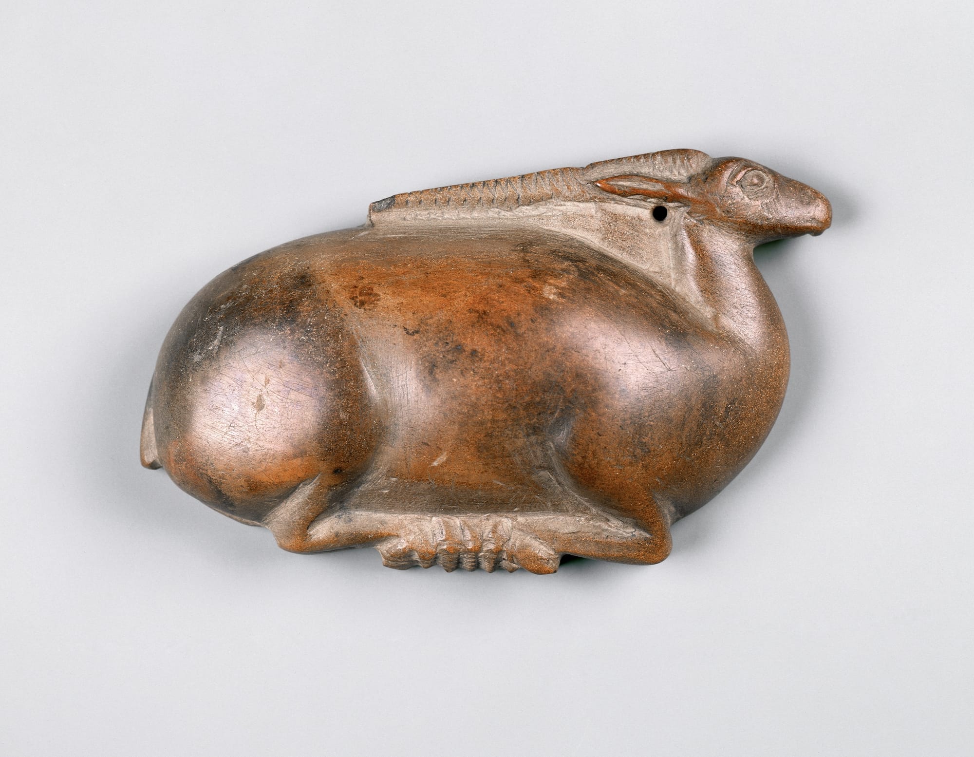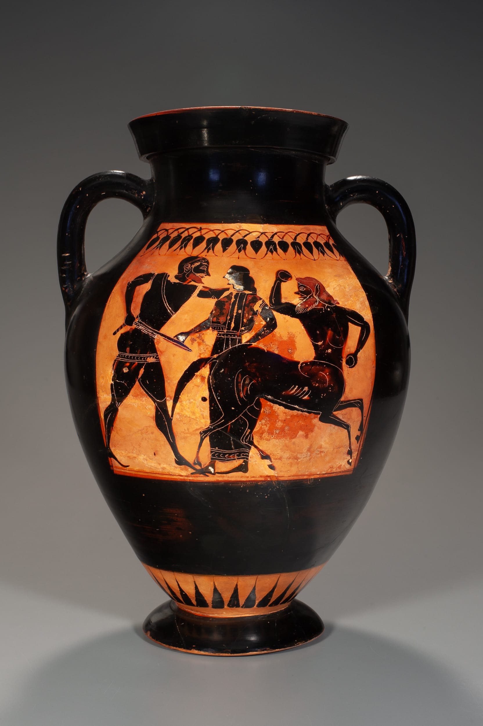 This Greek vase is a prime example of how ownership history can sometimes be far more interesting than the object itself. I wrote my dissertation on Greek vases, but even I have to say that this one is a somewhat homely example of the genre — one only a collector could love. But what collectors! The vase was brought home by the English Romantic poet Samuel Rogers, who traveled with Lord Byron until they quarreled about Byron’s inability to get up in time for their scheduled departures. (We’ve all had, or been, that friend.) The vase was passed down through Rogers’s family, appearing in a 1934 portrait of some of his descendants posed with their proudest possessions: the vase and their pet ring-tailed lemur, Mah-Jongg (nickname: Jongy), whom they had purchased at Harrods.