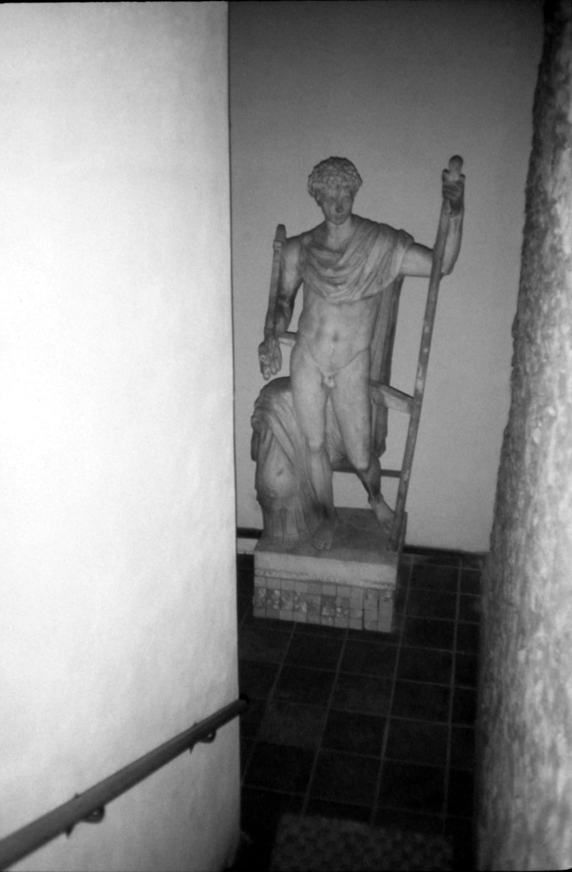 McAlpine, writing for a general audience, focuses on intriguing details rather than archival minutiae. We hear, for instance, about the antiquities purchased by Gilbert M. Denman, one of SAMA’s founding trustees. He bought them to round out the museum’s collections, but he hung on to them for a while before he donated them, so they could class up his palatial apartment, one of the social centers of San Antonio. Of course, no matter how Texas-scaled the apartment, its owner faces certain limitations compared to the aristocratic English Grand Tour collectors that Denman emulated. He bought a seven-foot-tall portrait of Marcus Aurelius owned in the 18th century by the First Marquess of Lansdowne, who displayed it in a special statue gallery. The emperor took up a markedly less glamorous position in the lobby of Denman’s apartment building when he couldn’t fit up the stairs. McAlpine includes a 1970s photograph of Marcus Aurelius leaning on his staff and shooting an unfocused gaze at the steps, like a tipsy party guest gathering strength before the final flight.