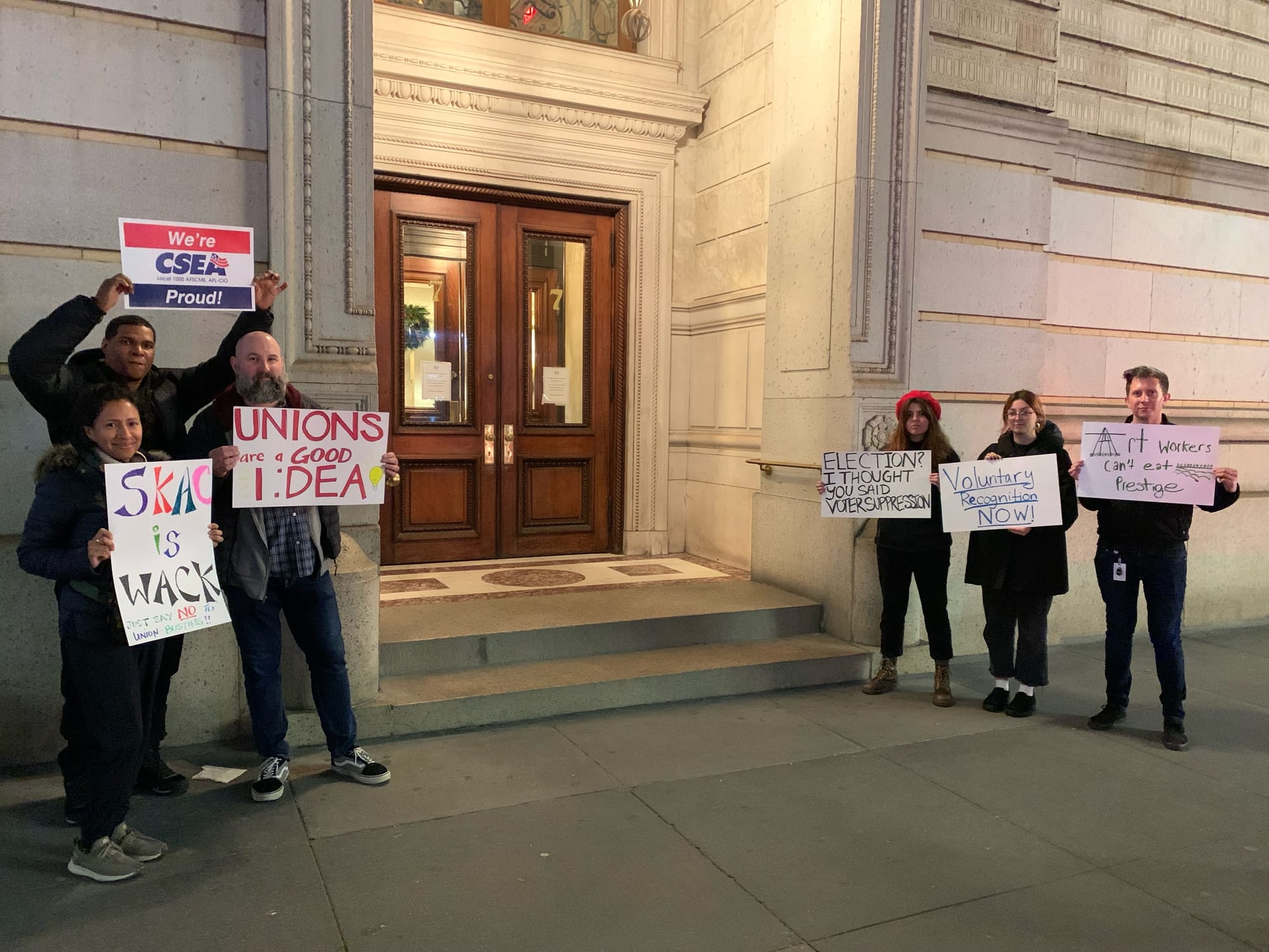 Last Friday, December 9, several SKAC Workers United members showed up to a private trustee event at the Century Association in Midtown Manhattan, where they hand-delivered a petition to board members with more than 1,100 signatories — including Storm King patrons from 32 states — asking for voluntary recognition and no interference.
