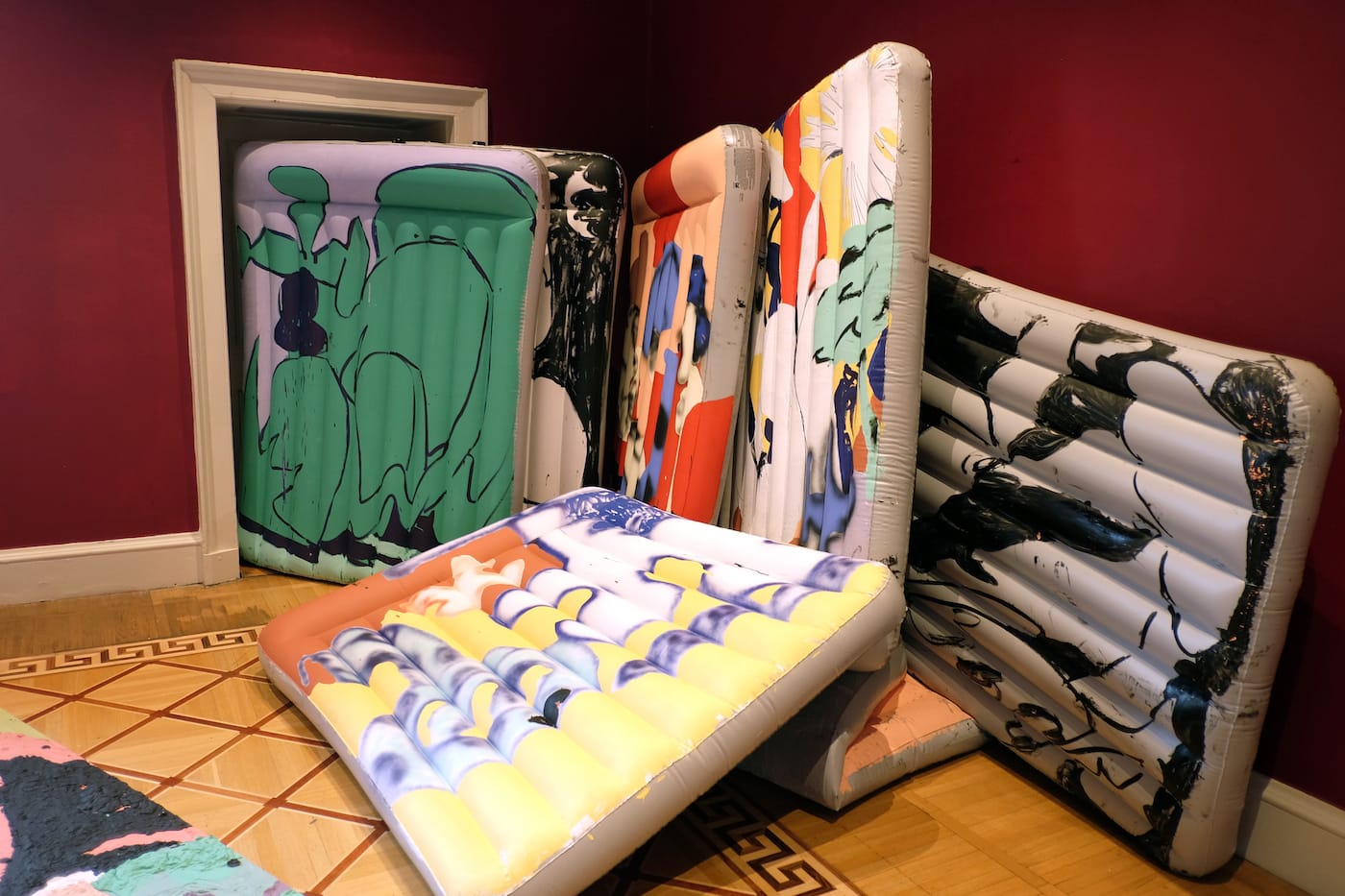 For his recent residency and exhibition with Russell Maurice at Somerset House in London, Horfee chose what at first may seem an odd artistic surface, six queen-size inflatable mattresses. Painting these objects with the shapes and forms that have become key to his visual vocabulary — fungi, palm trees, plants, snakes — the final works contain, in themselves, a quite formal beauty, a careful balance of colour and form, sharpness and brutal confidence of line. Yet these works are also implicitly Intermural, following a clear trajectory from graffiti to gallery, from street to studio, and are difficult to fully comprehend without awareness of this journey. As within graffiti, the works use an impoverished, non-art surface on which to produce art, a surface that is uneven and indented, much like the shop shutters these artists so commonly use. As within graffiti, the works are subject to an inevitable process of destruction (through their slow yet inescapable deflation), a process mirroring the latent ephemerality of the graffiti in our streets. As within graffiti, the works embrace a refusal to work within normative boundaries, resisting the tyranny of canvas, resisting the rules of conventional practice. Yet these works take much influence from the history of Contemporary Art, from the “soft” sculptures of Claes Oldenburg for example, his method of making hard into soft, of rejecting the exalted and embracing the everyday. Horfee’s works thus not only create a direct link between these two realms, but they push the boundaries of each of them. They embrace the fine line, the frictions that this border zone presents.