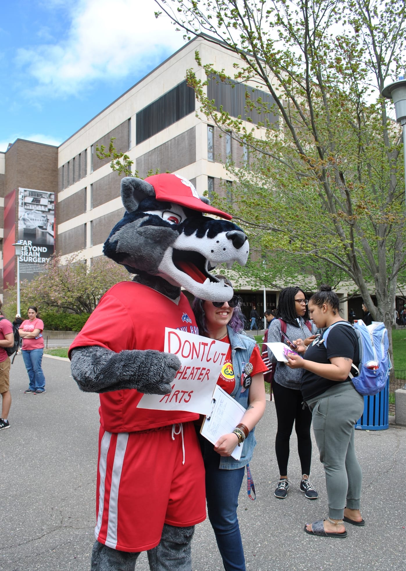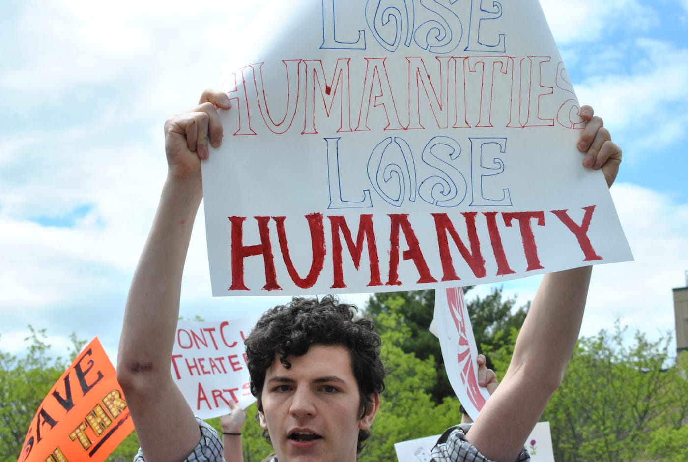Baker-Porazinski declared his major almost immediately, as Lutterbie’s email also assured students that current majors and minors would be allowed to complete their degrees — 46 students currently identify as Theatre Arts majors — but new ones would not be admitted. But that step was just one act of resistance; Baker-Porazinski felt that it was critical to understand how and why the university had gotten to this point. That sense of urgency became more acute as he learned that other departments in the humanities were being similarly targeted. Languages, cultural studies, comparative literature, and cinema studies are the other programs slated for consolidation, an action that will affect more than 200 undergraduates who have declared majors in these subjects. He organized a protest for May 3, to coincide with a campus-wide celebration called Strawberry Fest. While only about 30 students showed up, they were able to collect thousands of signatures on a petition calling for the university to reassess its plan, which had not yet been made public by the dean to students. “Hardly anyone knew what was happening at this point,” Baker-Porazinski said.