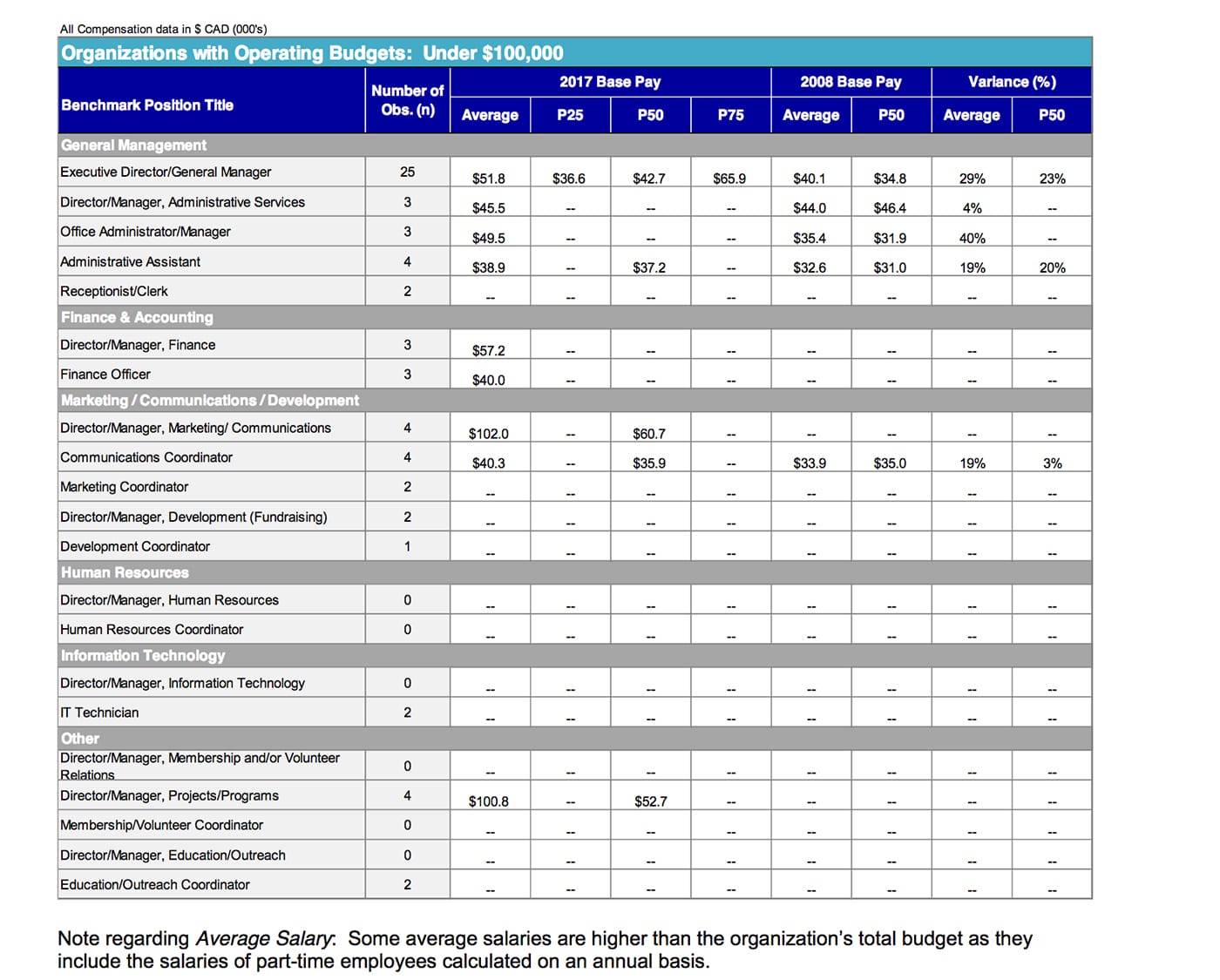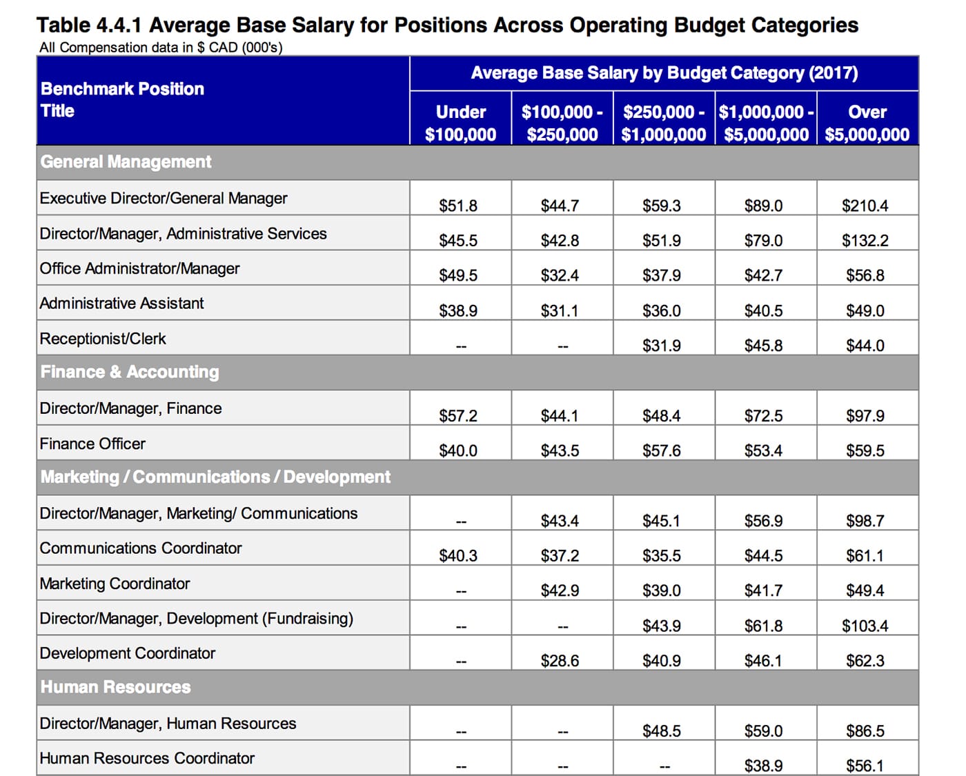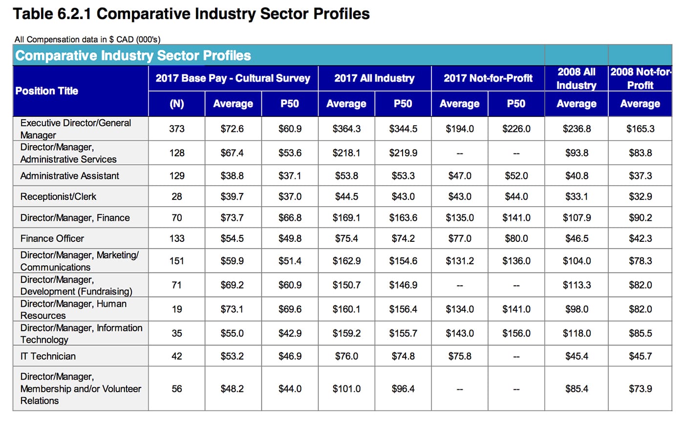The entire “2017 National Compensation Study – For Managerial and Administrative Positions in Not-for-Profit Arts Organizations” is available from the Cultural Human Resources Council.