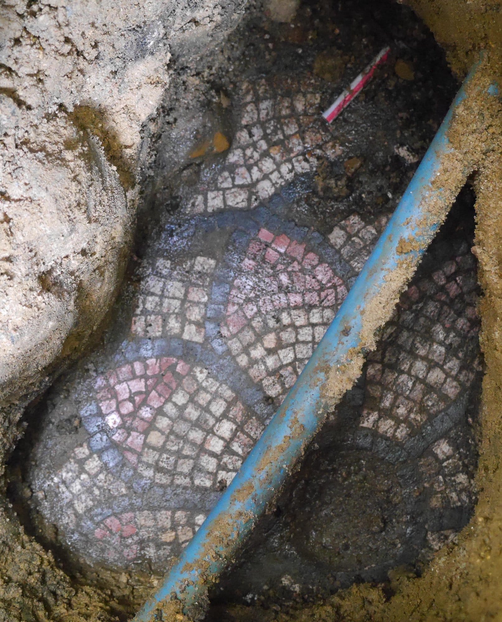 “On the two recent occasions when we revealed glimpses of the buried mosaic, as you can imagine there was a lot of public interest from the passersby,” said Crummy. The appeal of the mosaic as an attraction was not lost on the city council or the shopping center and triggered renewed efforts to safely uncover and display the tilework — a process hampered by the need to redirect modern services running above it, including a high-voltage power line.