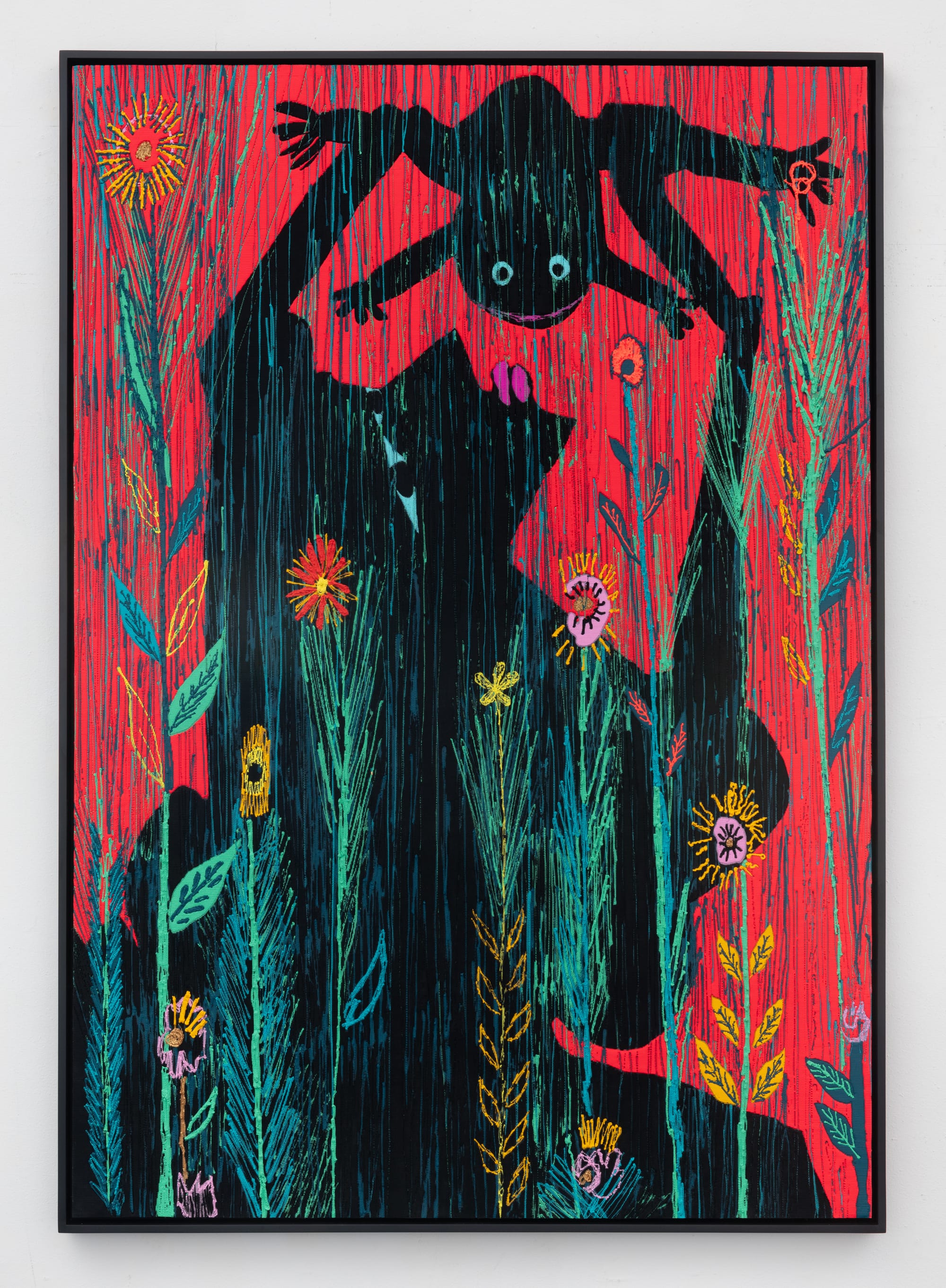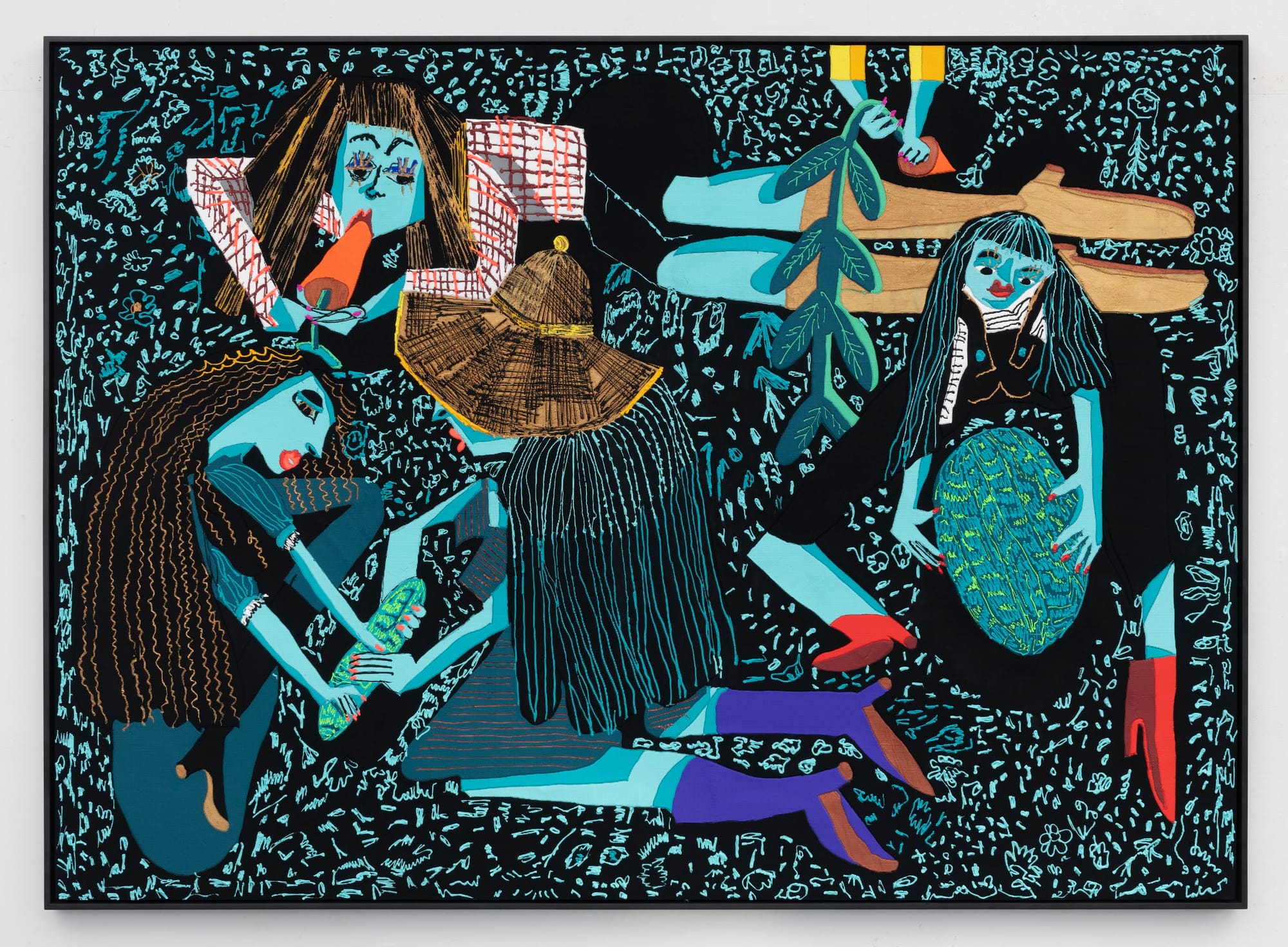 LOS ANGELES — Summer Wheat's Fertile Ground is a lushly mystical garden. Featuring brightly colored large-scale paintings and three sculptures, her third show at Nazarian / Curcio showcases her attention to intricate detail and the labor of art-making, reflecting the female-centric labor depicted in the paintings themselves.