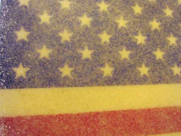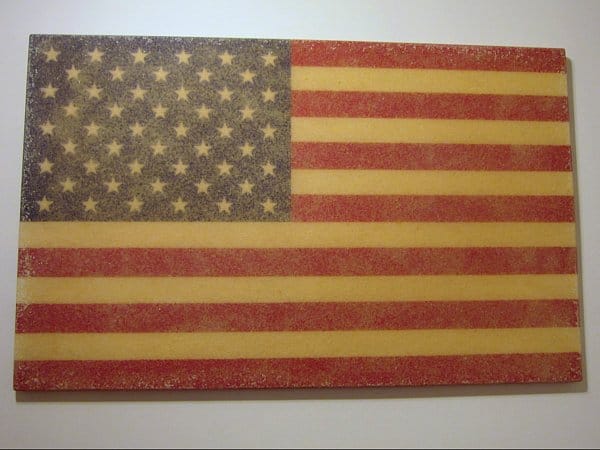 Choi’s “America=rice country” is much more forthright: an American flag built from rice, the kernels suspended in heavily coated colors. The coy take on a Jasper Johns is as hard as a rock, as gallery owner Troyan Tecau demonstrated to me by rapping his fist against its solid surface. Tecau told me that the first iteration of the flag was plagued with rice weevils, so to keep future vermin from devouring the art Choi sealed the piece completely.