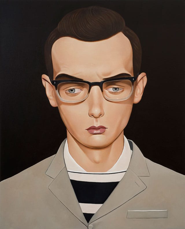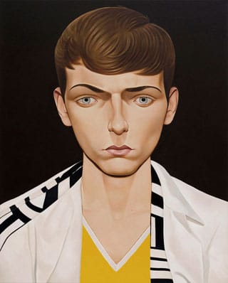 Here is the real difference between Stichbury and both Peyton and Phillips. While they all focus on surface appearances, only Stichbury evokes interiority and depth. By not picking a celebrity — someone we recognize — or a clichéd romantic type (wan and thin young men), and by focusing on people who haven’t been branded, Stichbury invites us to scrutinize these remote individuals who are uncomfortable in their perfect skin. Harold Child’s forehead looks too big, with the skin stretched a little tightly over the skull. Barnaby Pan has a few tiny moles that, against the flawless skin, become visual irritations. (Imagine how Mr. Pan must feel. And this is also what makes Stichbury’s work so extraordinary and riveting — one cannot guess at the turmoil seething behind these perfectly controlled faces, these calculated looks of introspection. Perhaps, as Gertrude Stein stated, “there is no there there.” Or perhaps it might be that they have succeeded in repressing every errant thought or desire, have succeeded into making themselves into perfect robots.