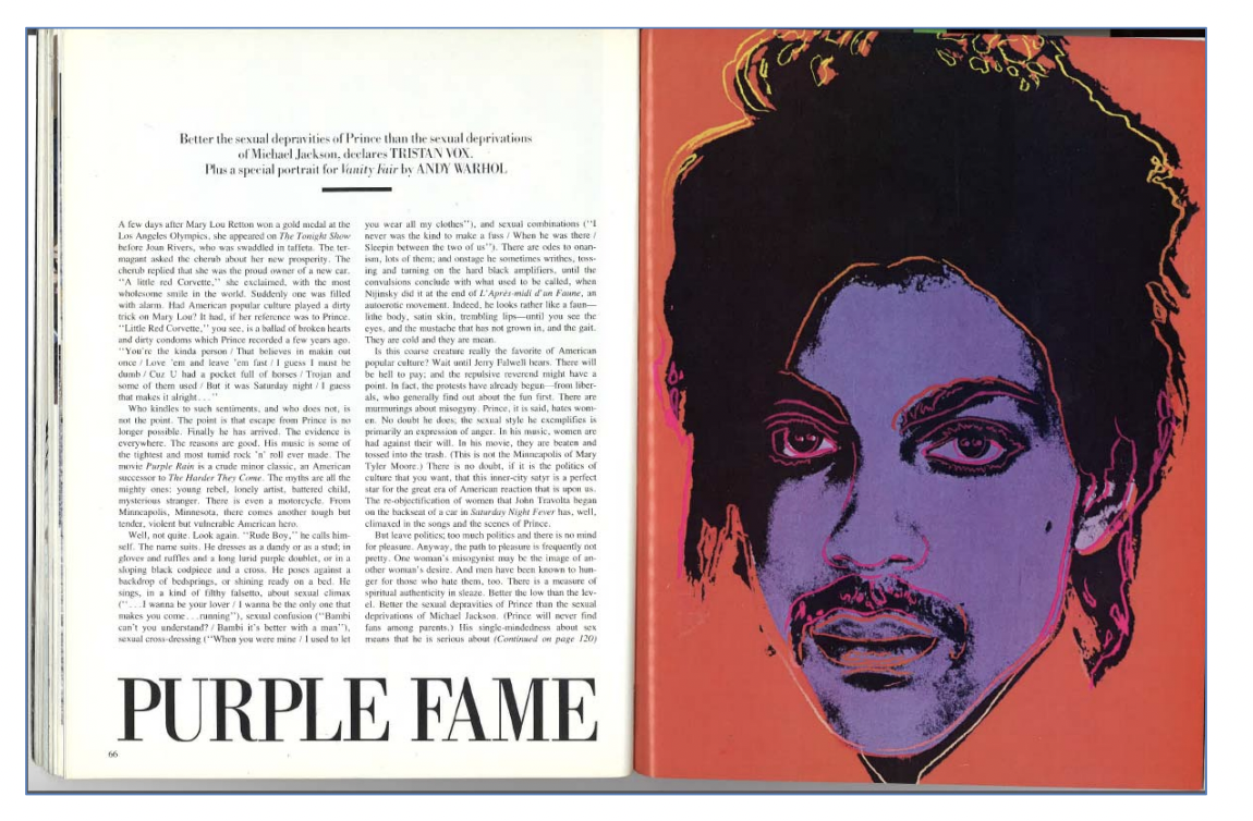 One of those works was a screenprint Warhol made in the last decade of his life, initially as a commission from Vanity Fair for a 1984 story on the rise of Prince. It had been a year since the breakthrough success of the singer’s Little Red Corvette record and the magazine wanted to use Warhol’s recognizable visual style to illustrate its conviction that Prince "has arrived."